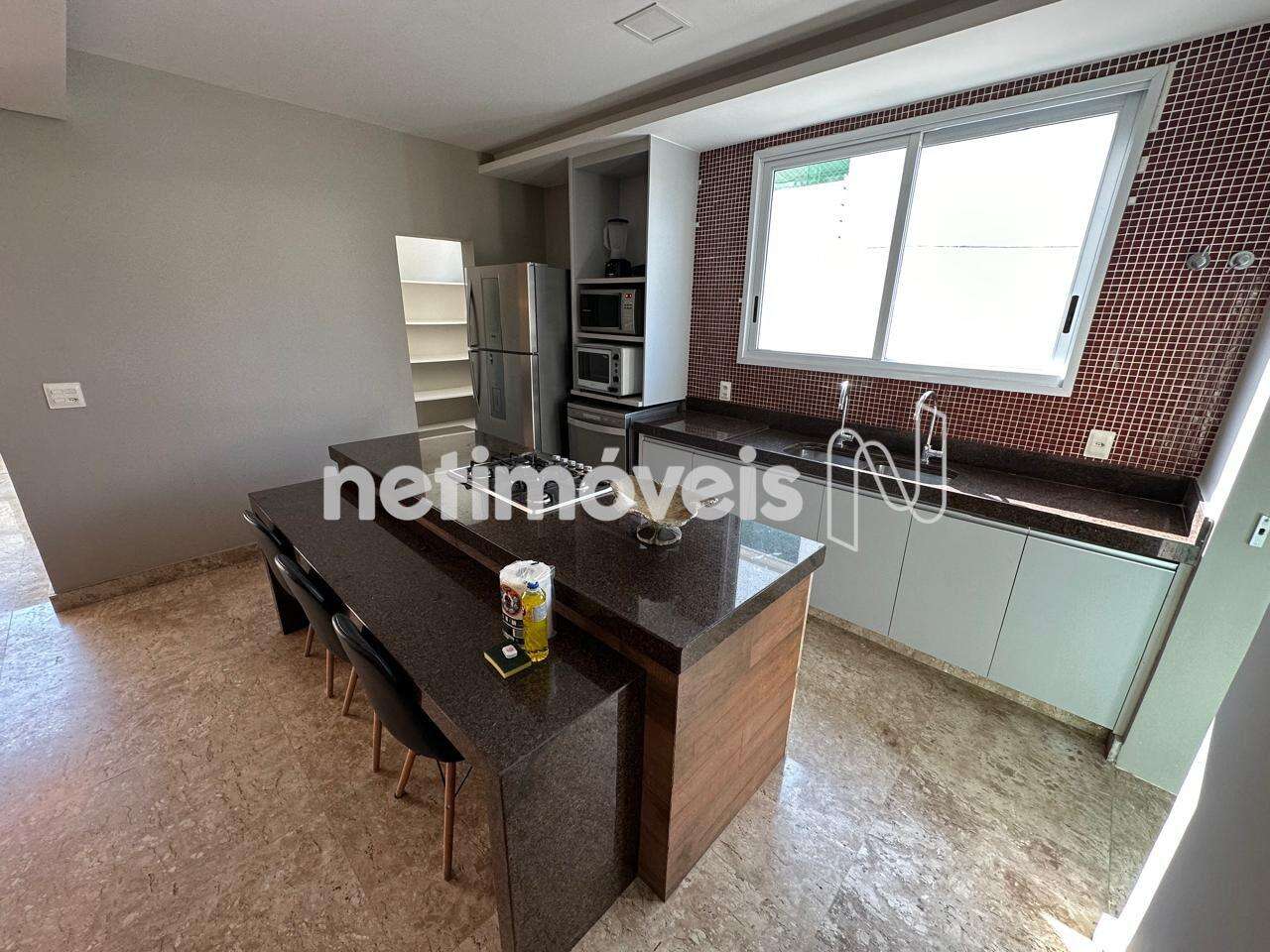 - Cozinha com armários, ilha com coocktop e despensa;