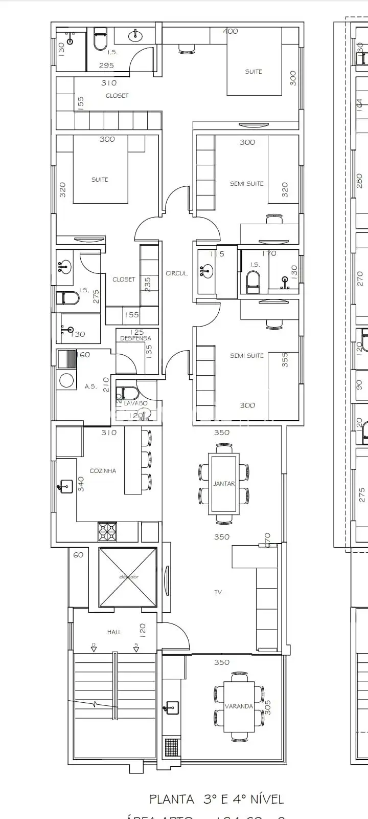 - 04 quartos, sendo duas suítes e duas semisuítes;