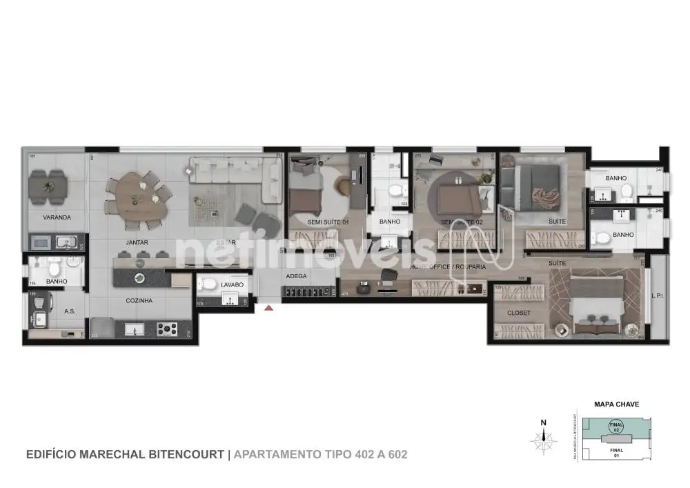 Um empreendimento exclusivo, com unidades que oferecem ambientes amplos e integrados, além de varandas e terraços privativos.