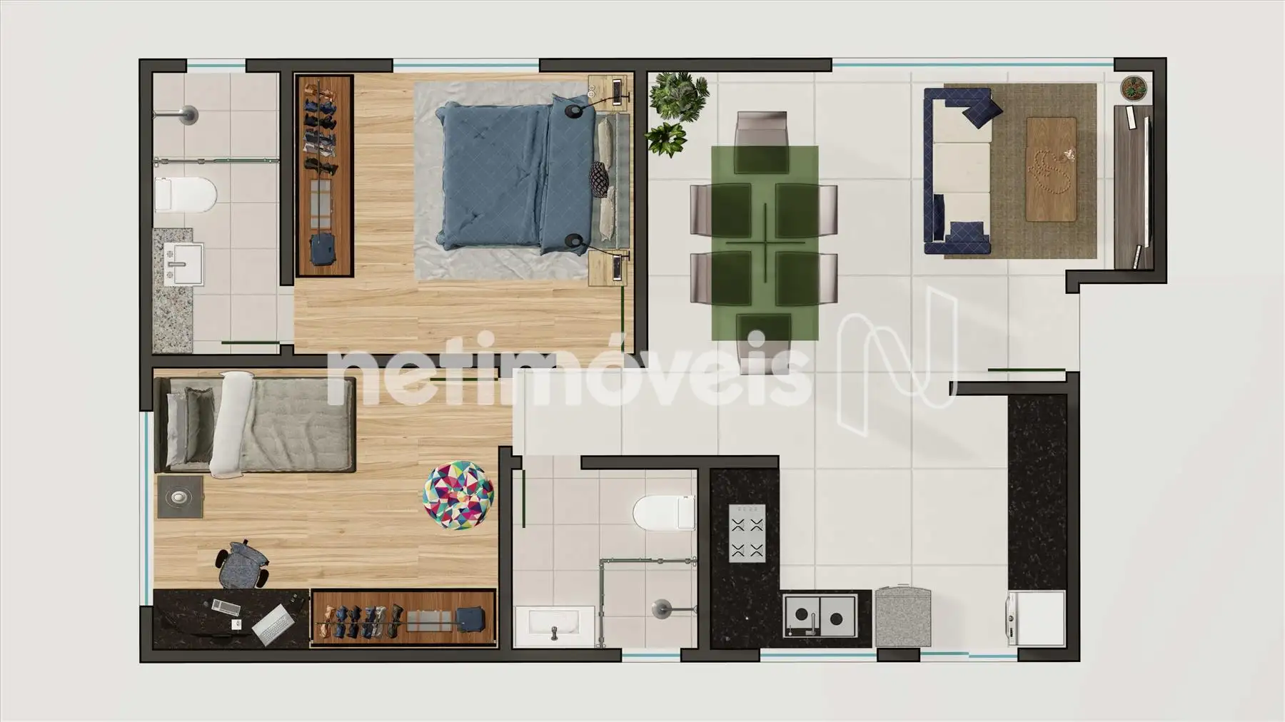 - 2 quartos com piso em vinílico, sendo 1 suíte