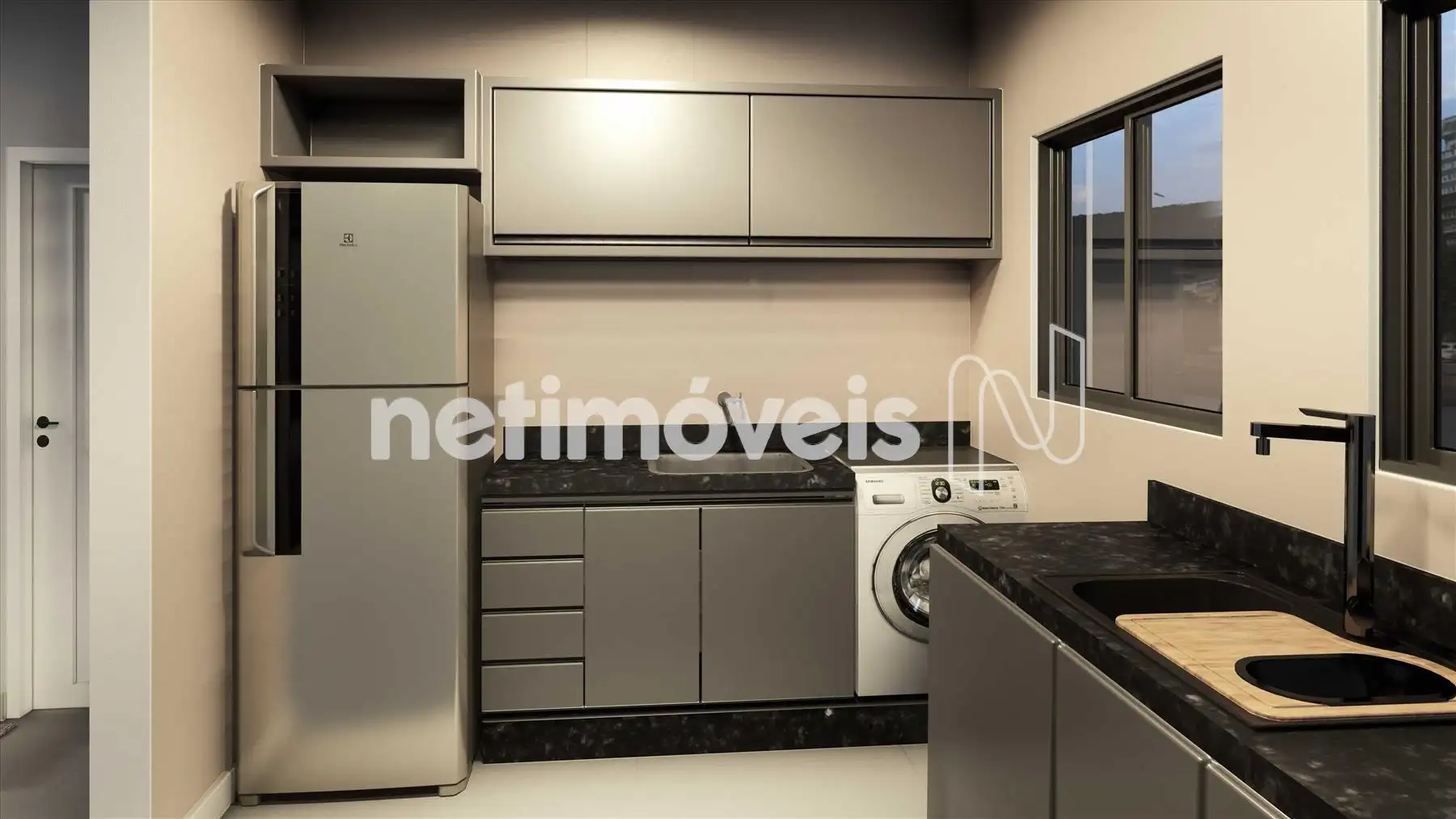 - Cozinha com piso e bancadas em granito