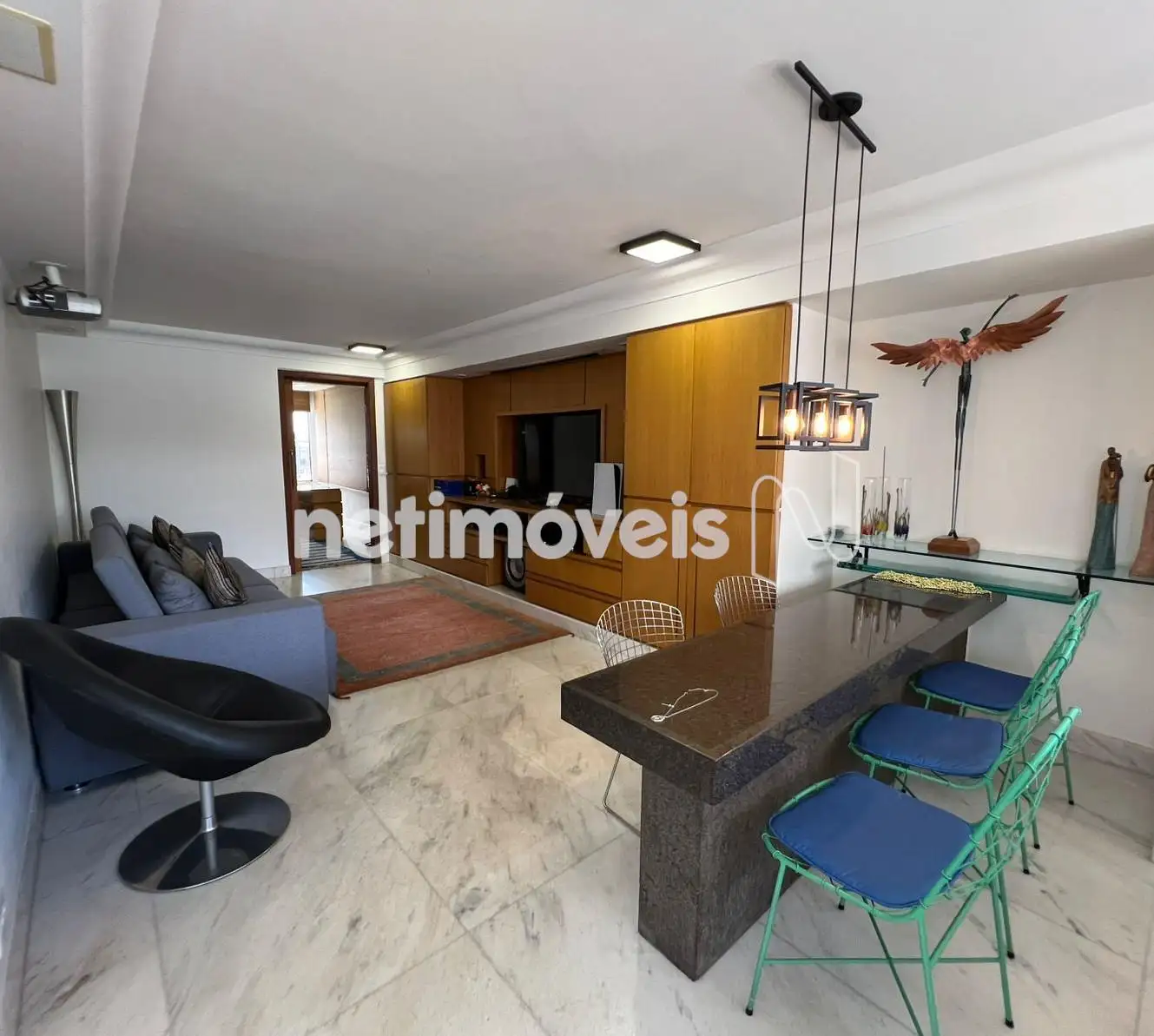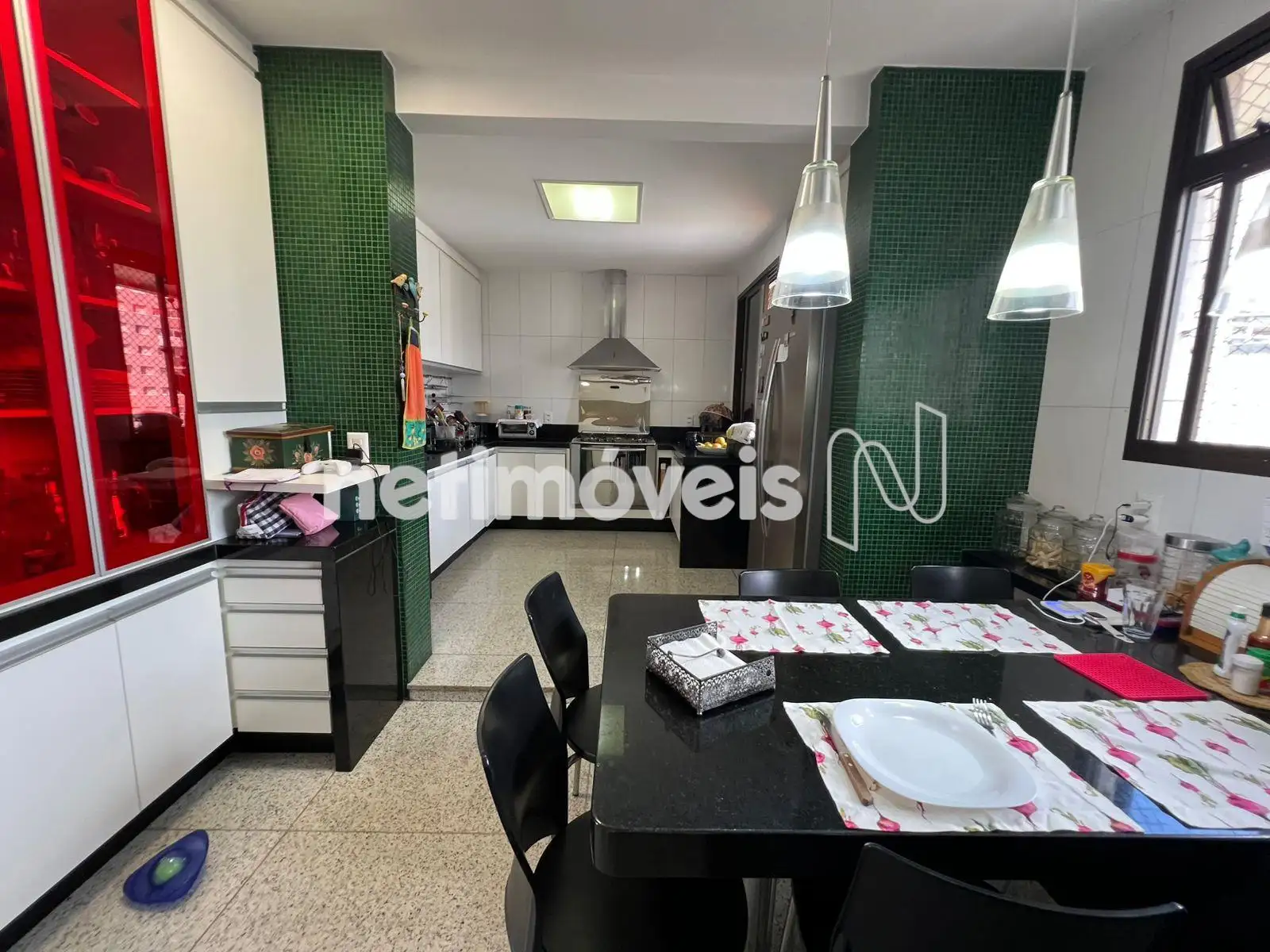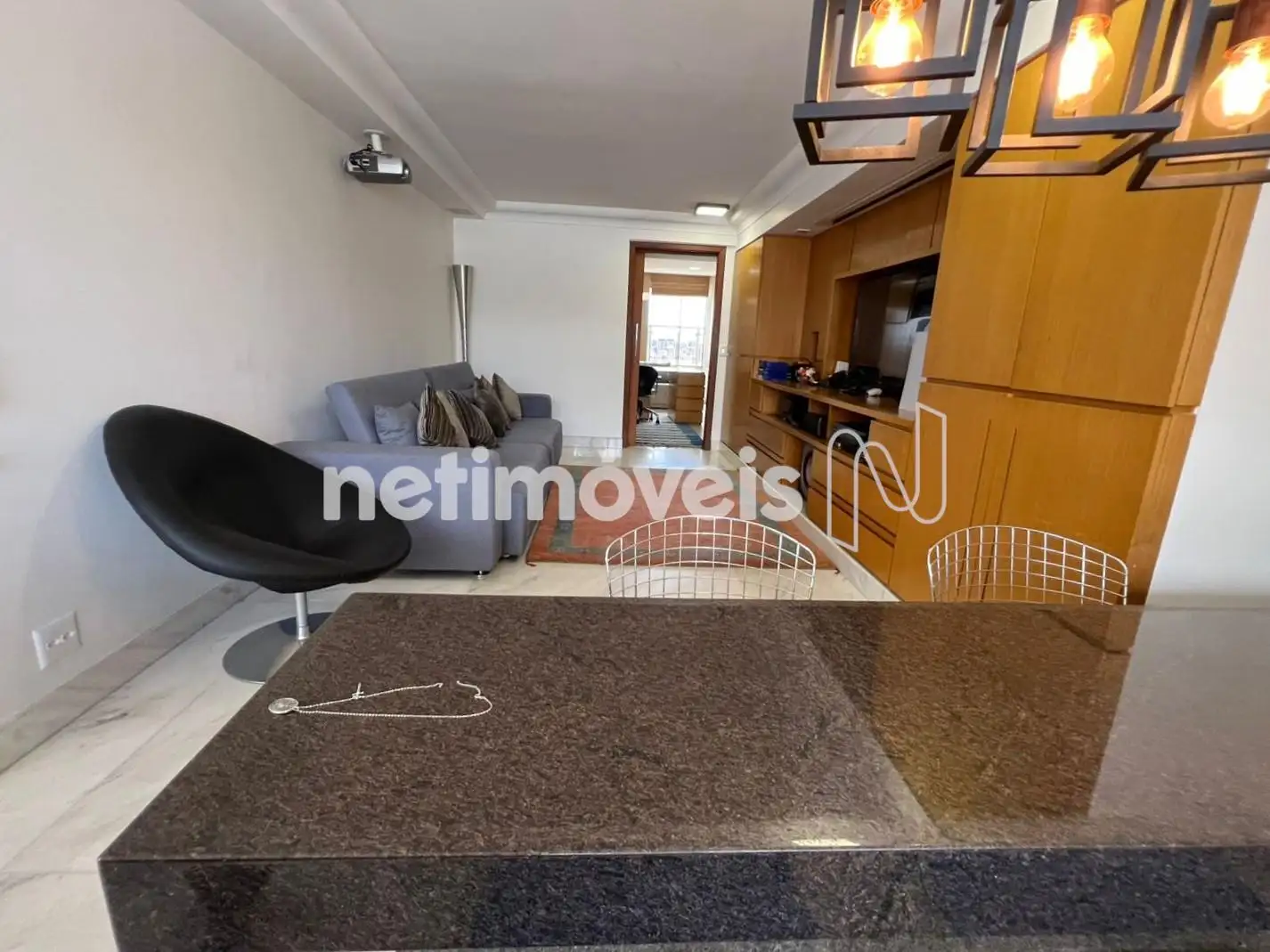 - Sala para 02 ambientes com varanda integrada, 04 quartos com armários sendo 01 suíte, banho social, cozinha ampla com armários, piso e bancada em granito, área de serviço, DCE.