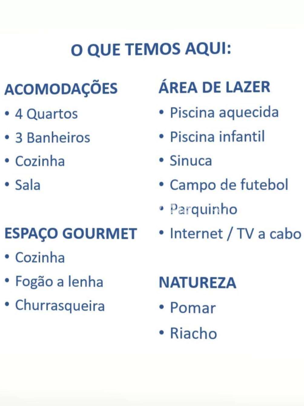 UM EXCELENTE RIACHO QUE CORRE DENTRO DA PROPRIESDADE, CAMPO DE FUTEBOL, PLAYGROUD, 02 PISCINAS, SENDO UMA DE ADULTO AQUECIDA E UMA INFANTIL, ÁREA EM CONSTRUÇÃO PRÓXIMA A PISCINA, VEGETAÇÃO DESLUMBRANTE, POMAR