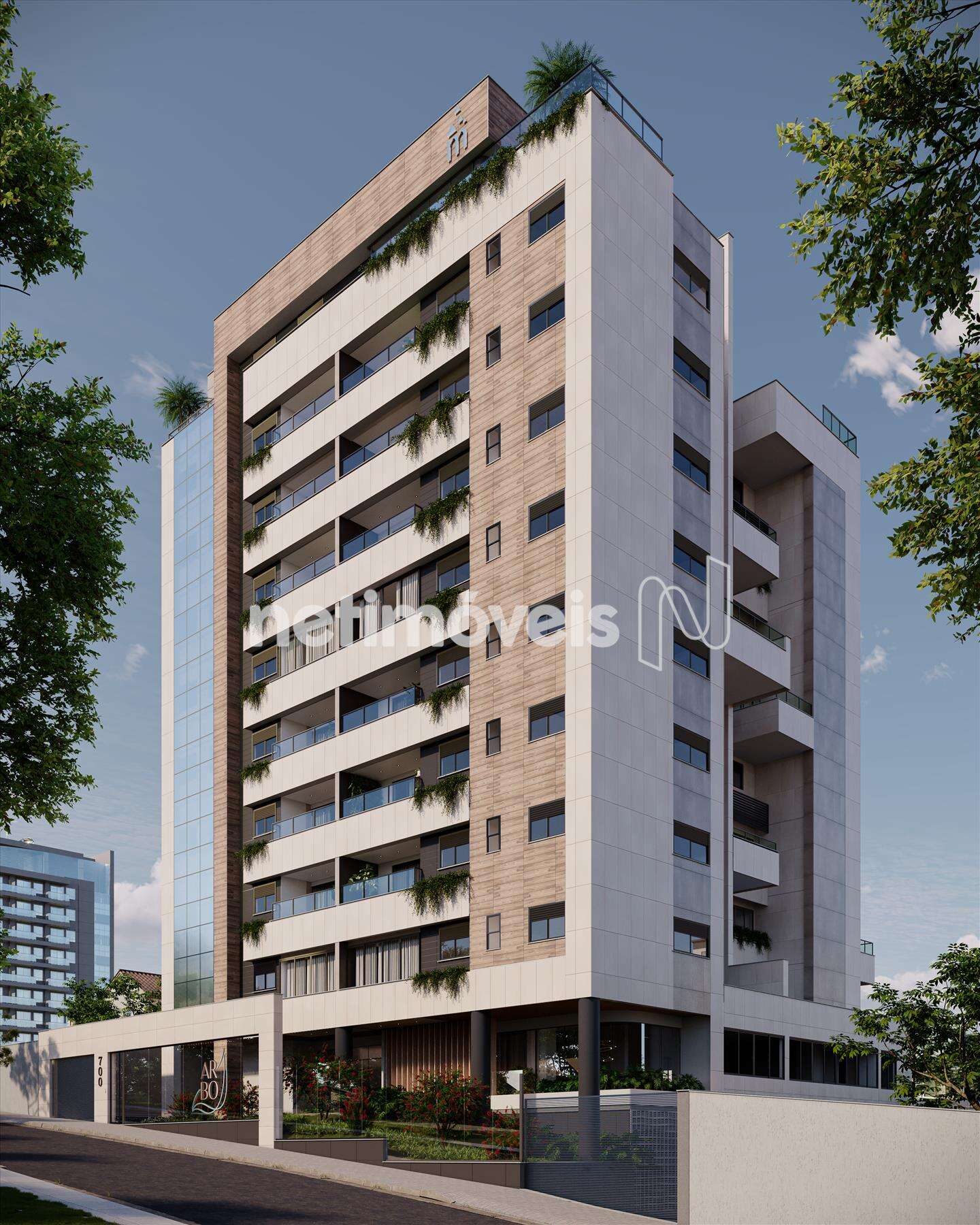 Edifício revestido em porcelanato com fachada aerada.