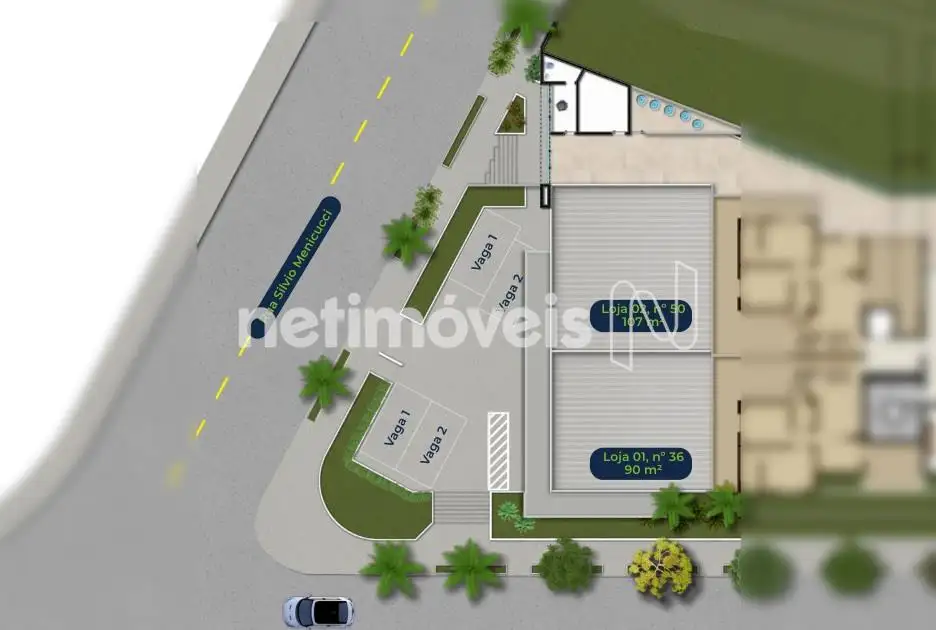 Cada loja terá 02 vagas de garagem.
