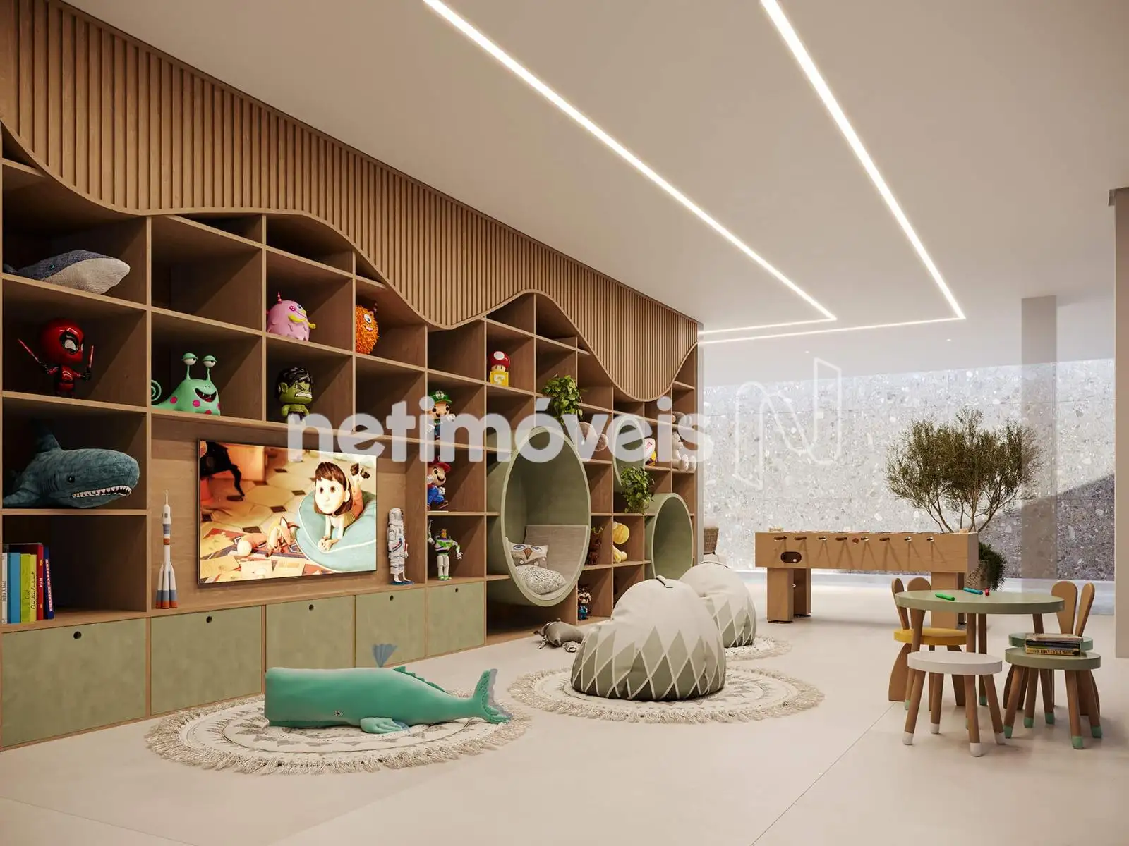 Nos apartamentos, a tecnologia é um ponto forte, com fechaduras biométricas e esquadrias com veneziana integrada e previsão de motorização. Há também previsão de infraestrutura para ar-condicionado, com dreno e carga elétrica.