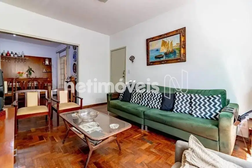 - Sala de estar e jantar integrada, com piso em taco e iluminação natural