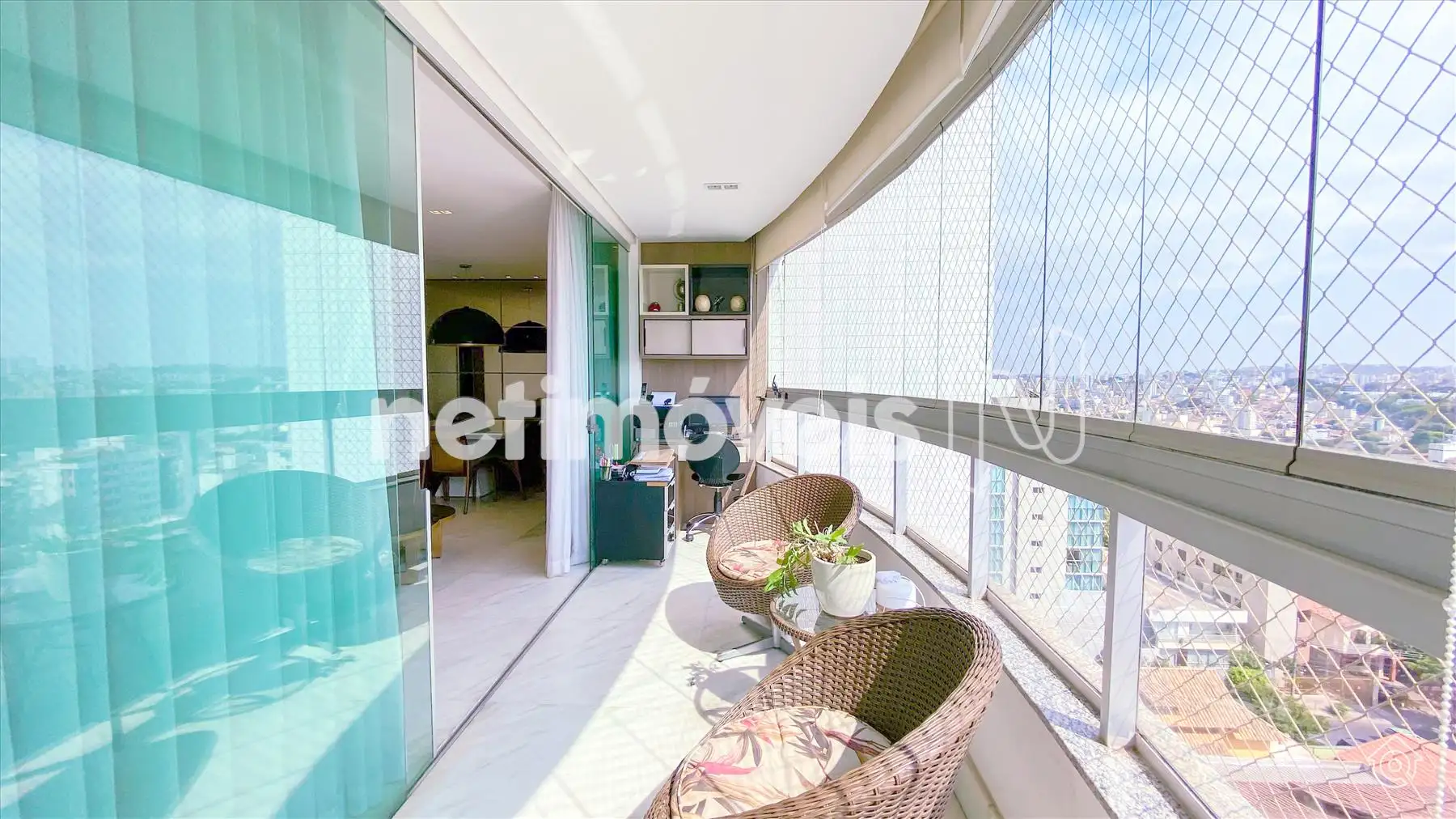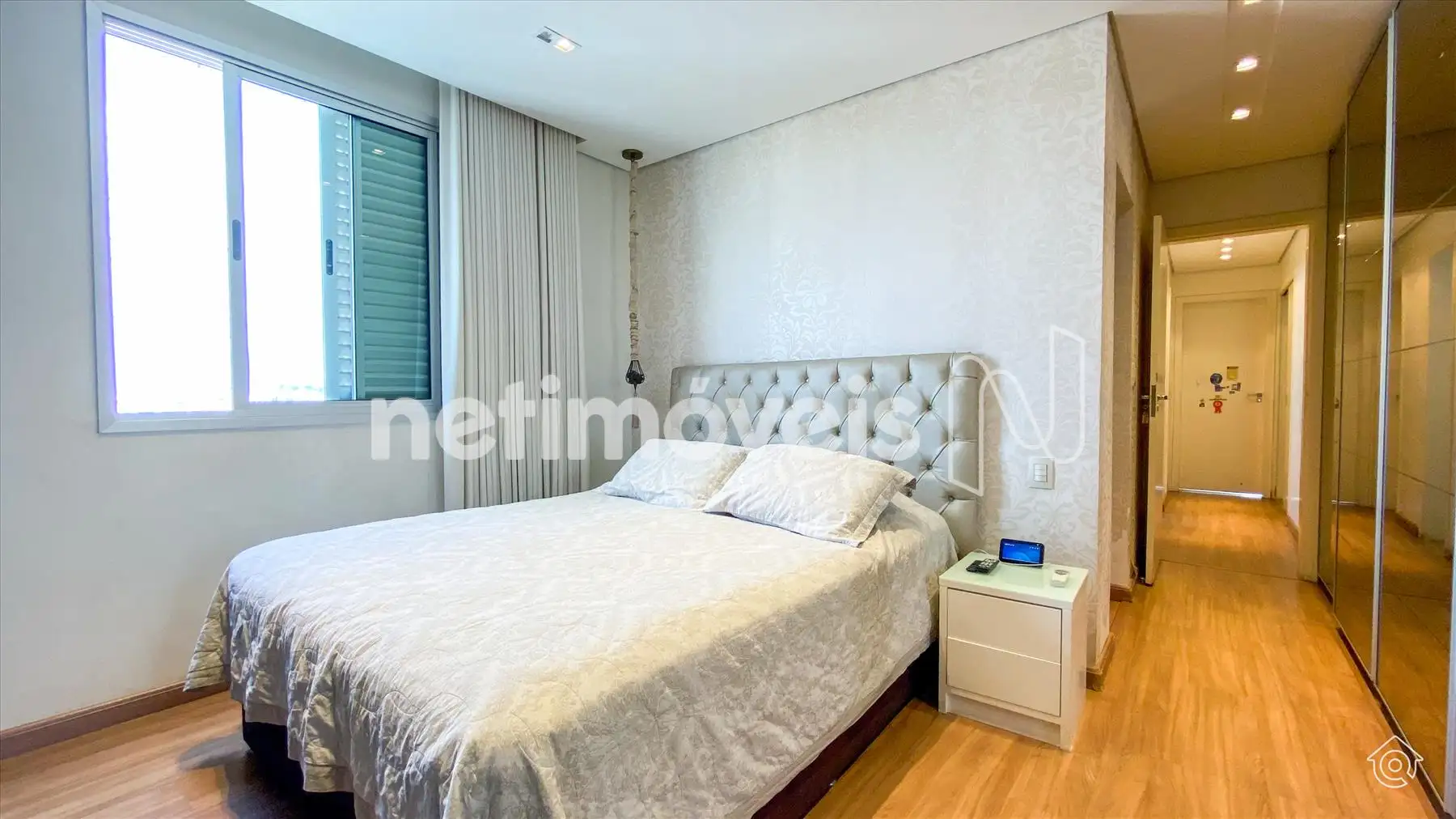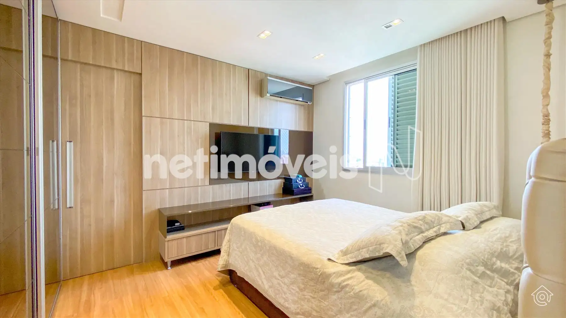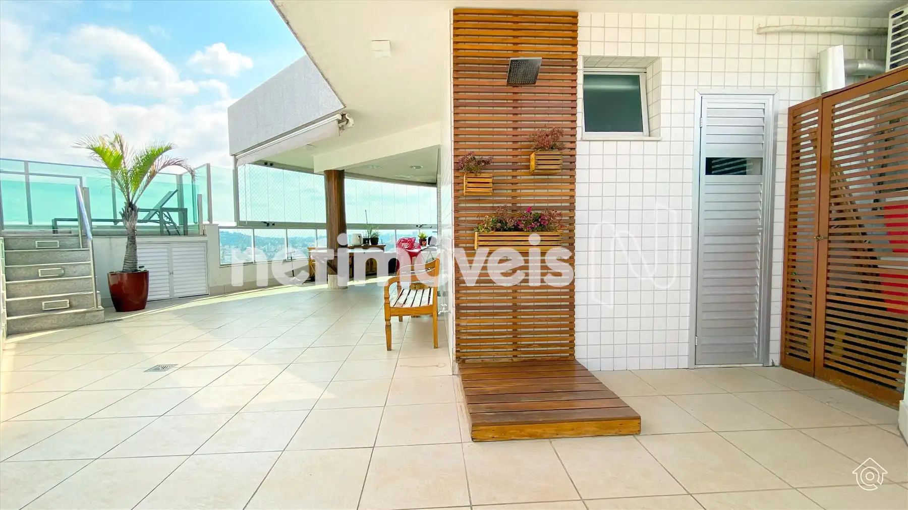 A cobertura é bem iluminada e arejada, com aquecimento solar. No 1º pavimento, possui uma ampla sala de estar climatizada, lavabo, varanda e 4 quartos, sendo 1 suíte com ar-condicionado e armários embutidos. Um dos quartos é adaptado como closet. Os banheiros têm armários e box de vidro temperado. A cozinha é equipada com bancadas em granito e armários, além de uma área de serviço com banheiro e quarto de empregada.
