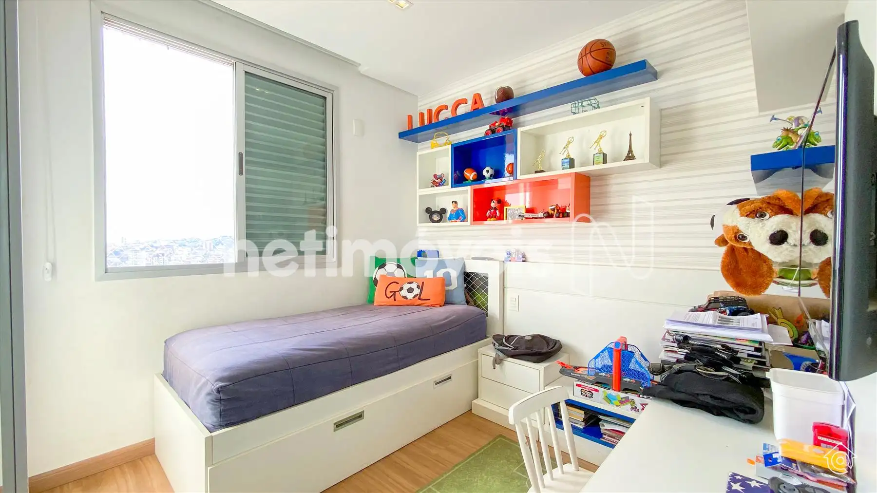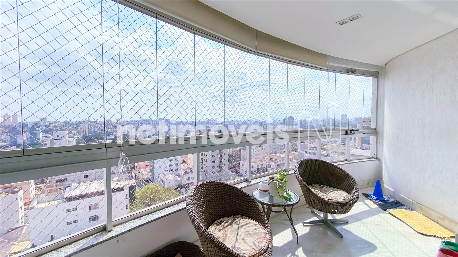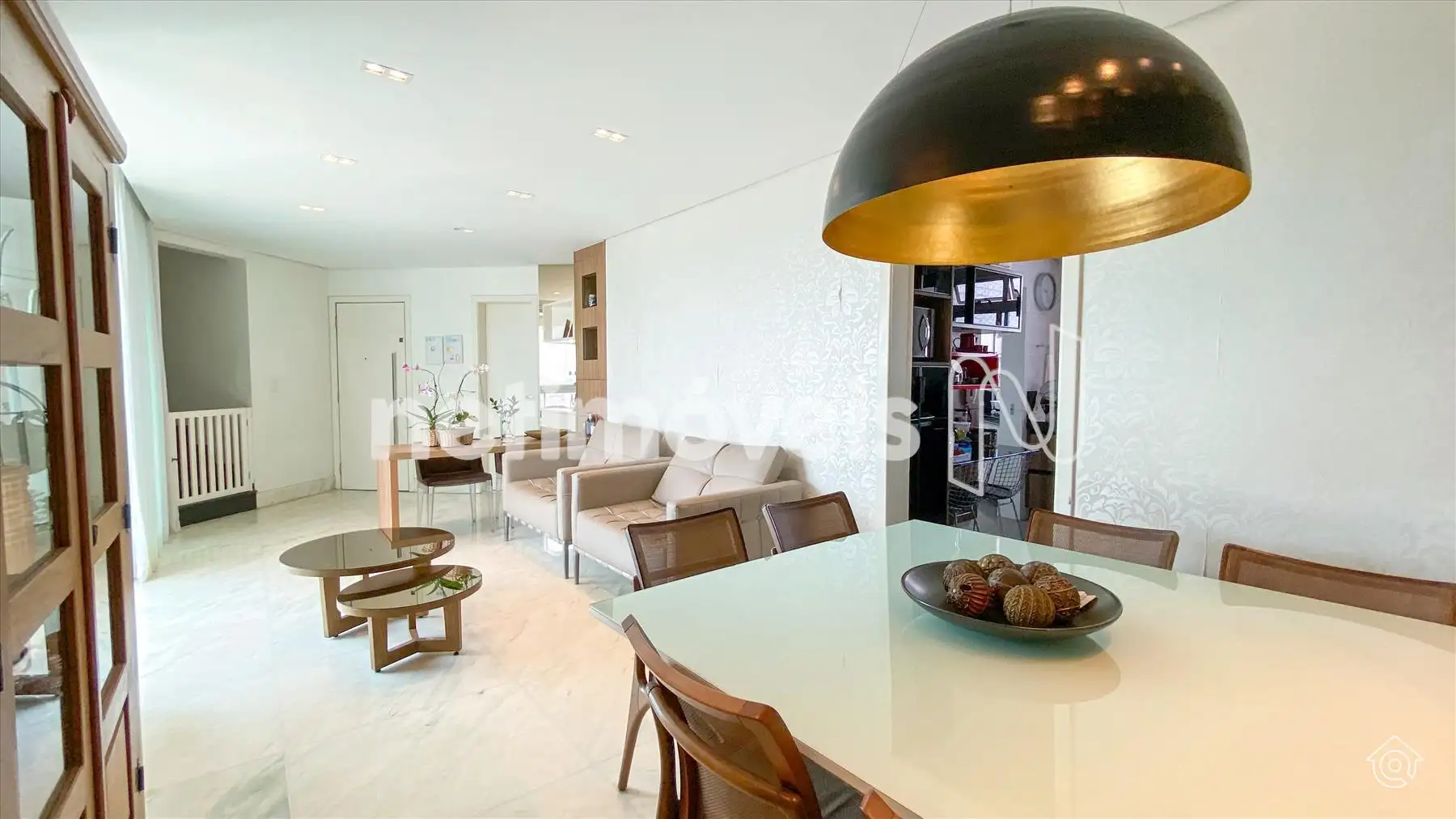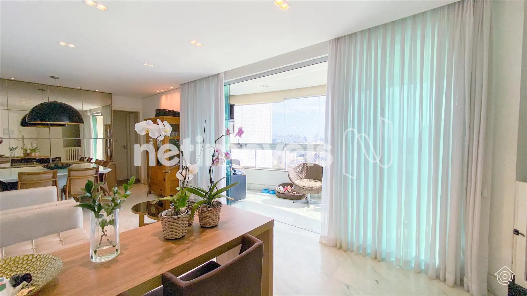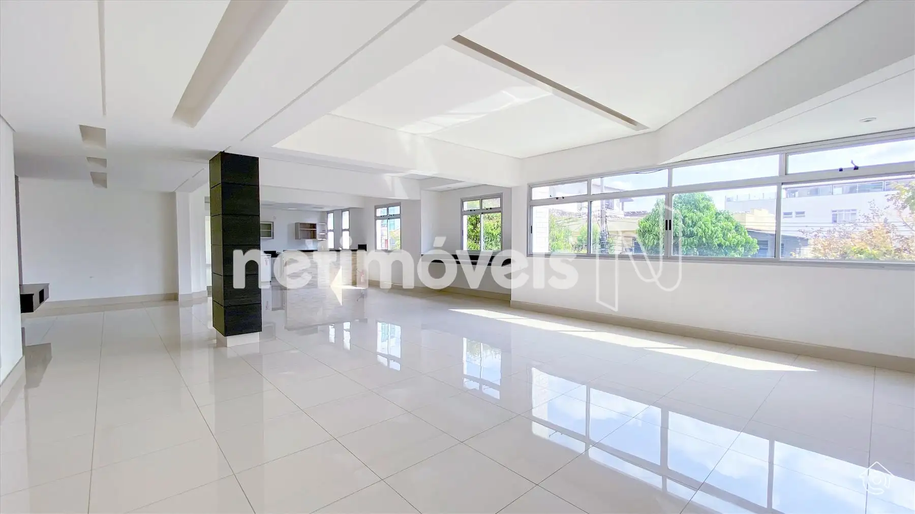 A cobertura é bem iluminada e arejada, com aquecimento solar. No 1º pavimento, possui uma ampla sala de estar climatizada, lavabo, varanda e 4 quartos, sendo 1 suíte com ar-condicionado e armários embutidos. Um dos quartos é adaptado como closet. Os banheiros têm armários e box de vidro temperado. A cozinha é equipada com bancadas em granito e armários, além de uma área de serviço com banheiro e quarto de empregada.
