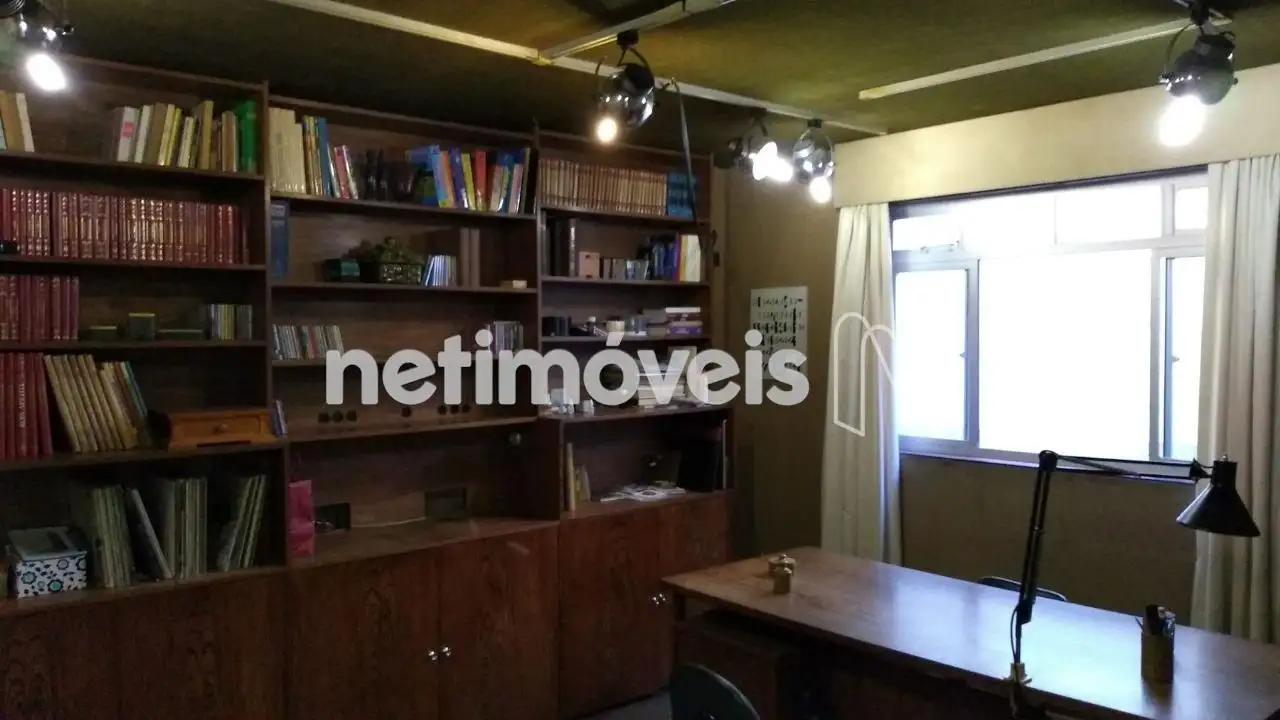 Escritório com estantes.