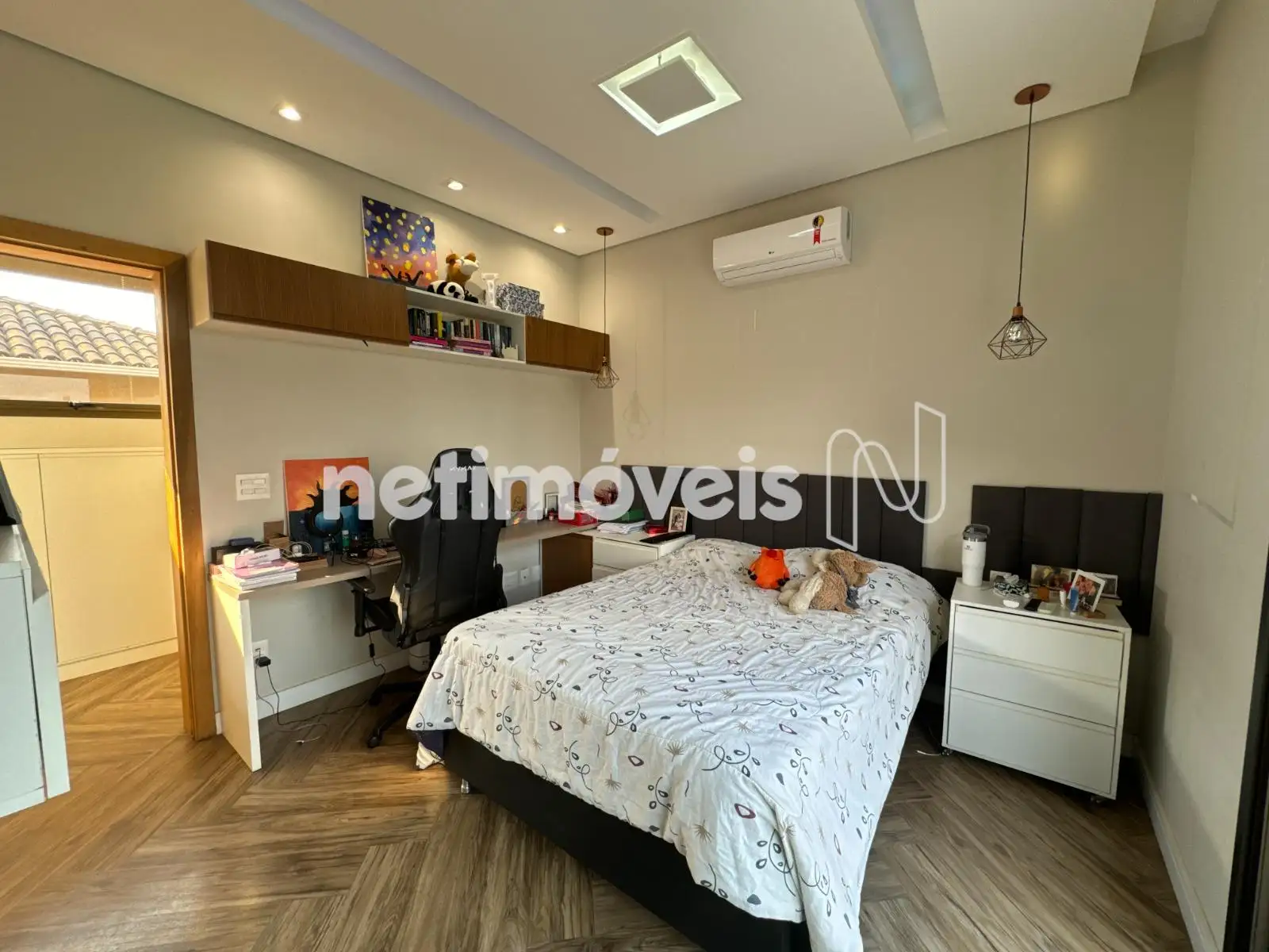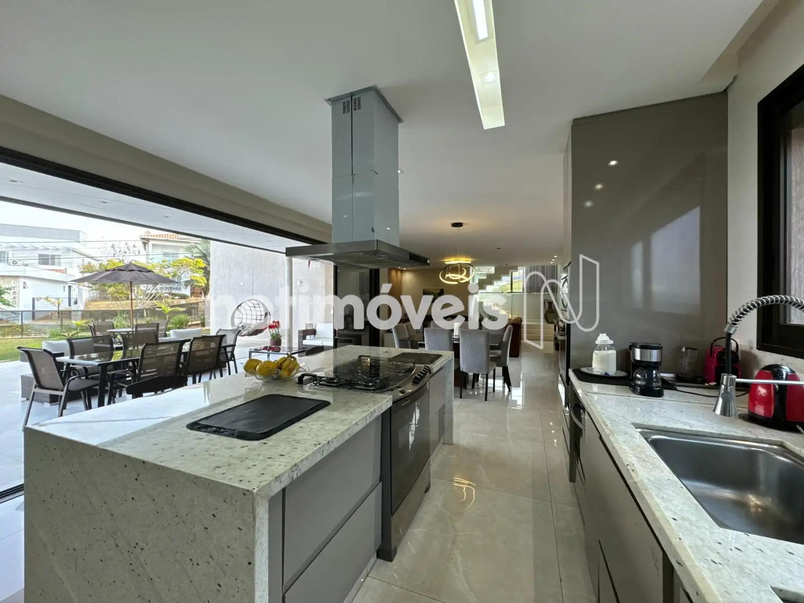 Excelente casa de quatro suítes, todas com armários; casa com vista definitiva para as montanhas no Residencial das Minas, com sala para dois ambientes com piso em porcelanato, cozinha integrada com copa, área gourmet com duas churrasqueiras, escritório que pode ser revertido como quinto quarto no primeiro andar; garagem para seis carros, varanda nos quartos, sistema fotovoltáico, lavanderia, DCE e ampla área no subsolo que pode ser usada coomo academia, por exemplo.