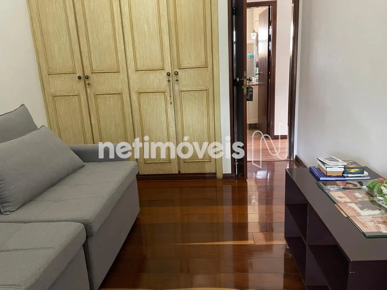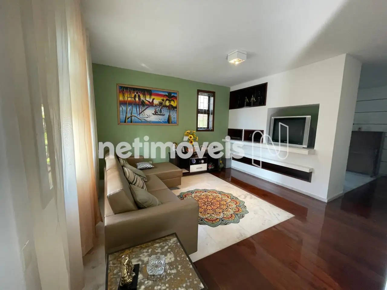 - Sala de TV com piso em tábua corrida;