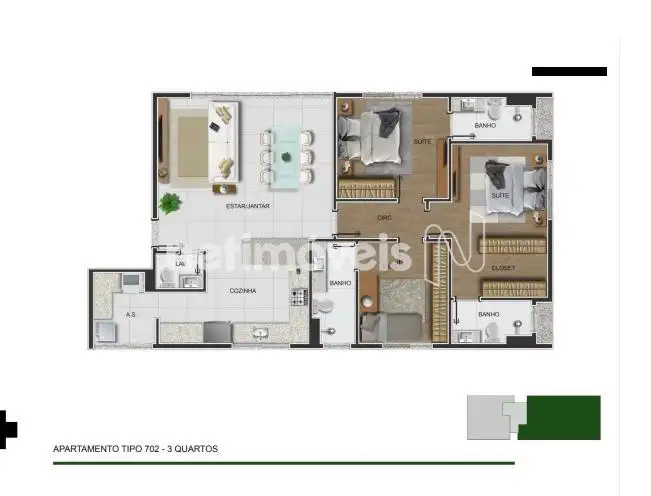 - 3 Quartos sendo uma suíte,