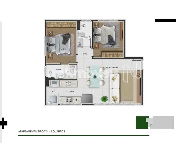 Apartamento 2 Quartos Funcionários 74m²
