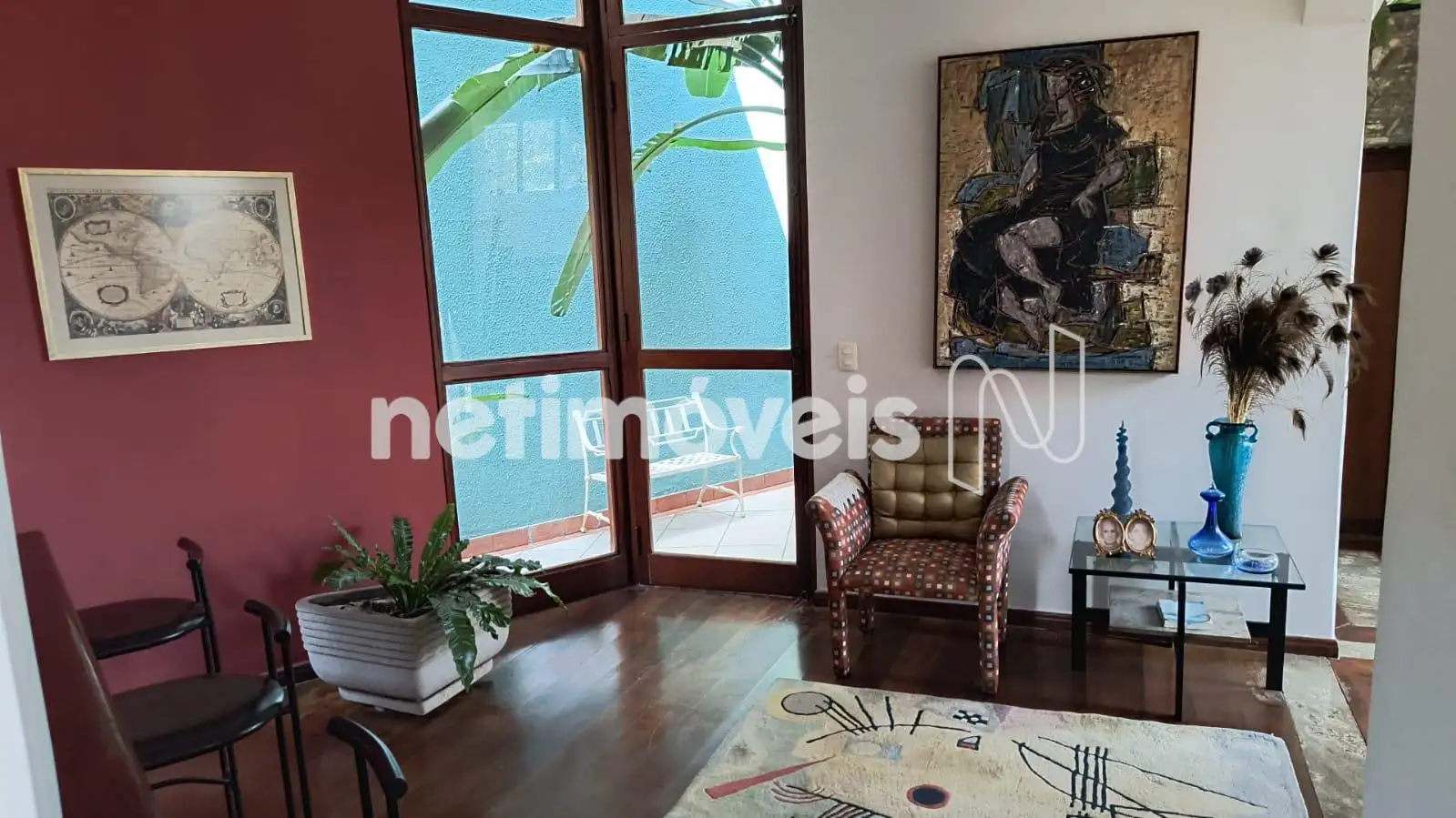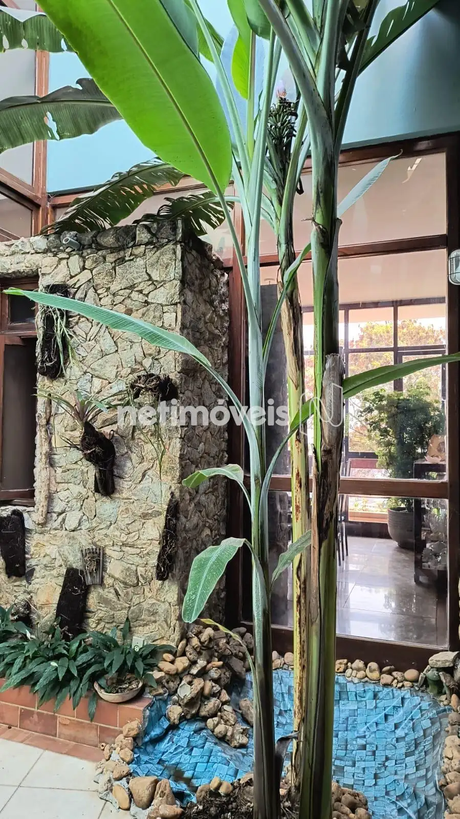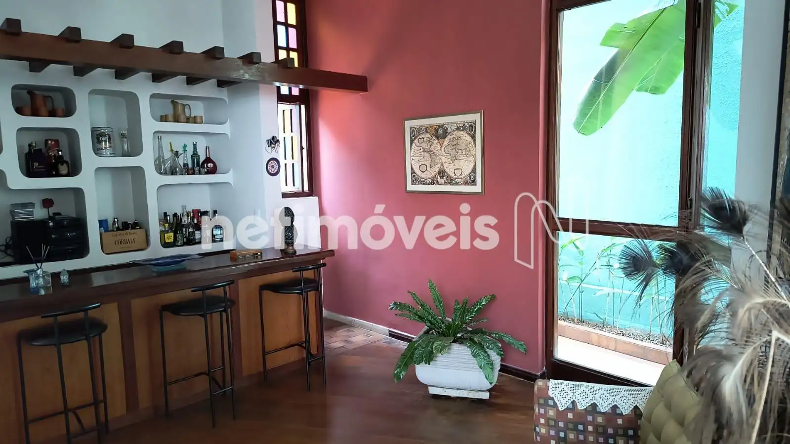 - 01 Sala com um bar e jardim de inverno.