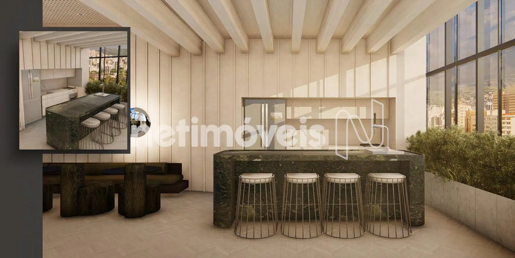 Ampla sala e cozinha aberta