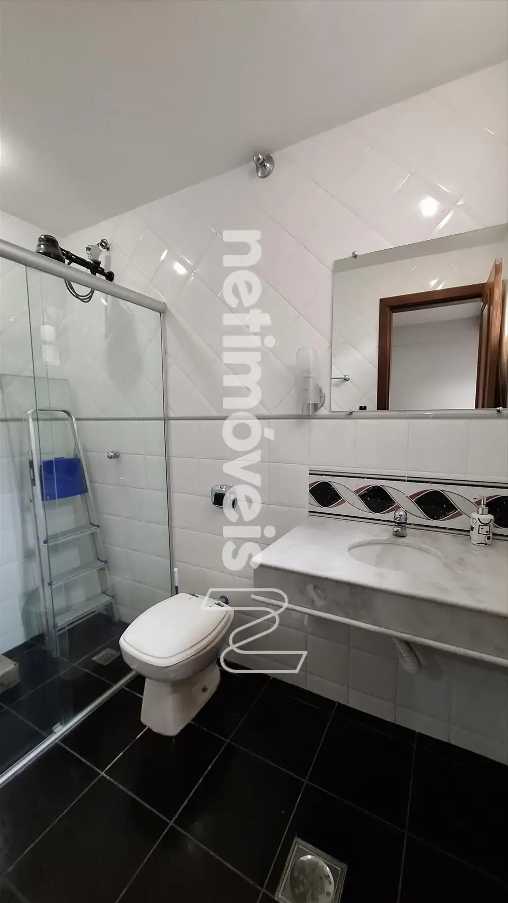 - 1 quarto com piso em tábua corrida, guarda-roupas planejado e suíte com box de vidro e espelho