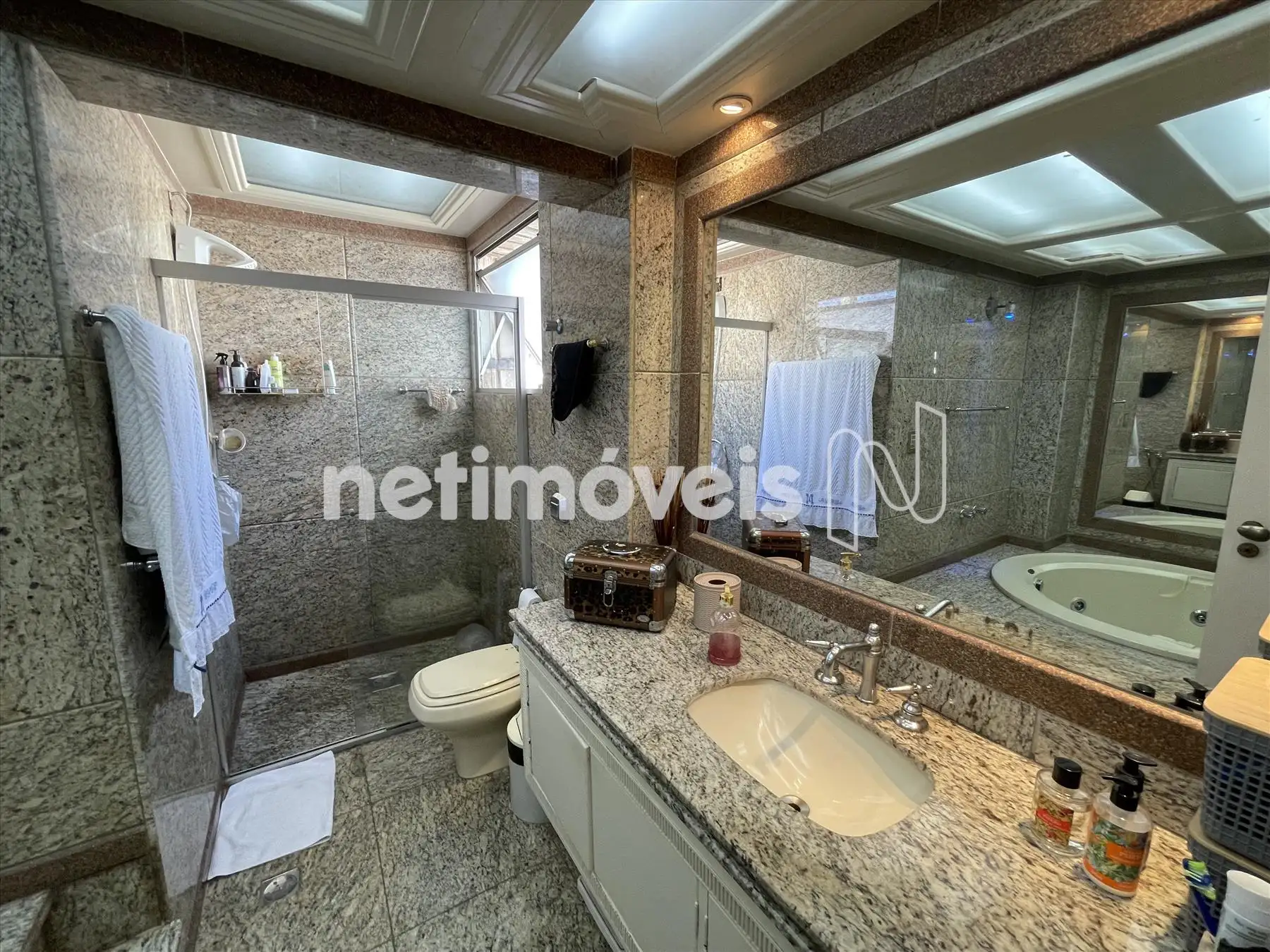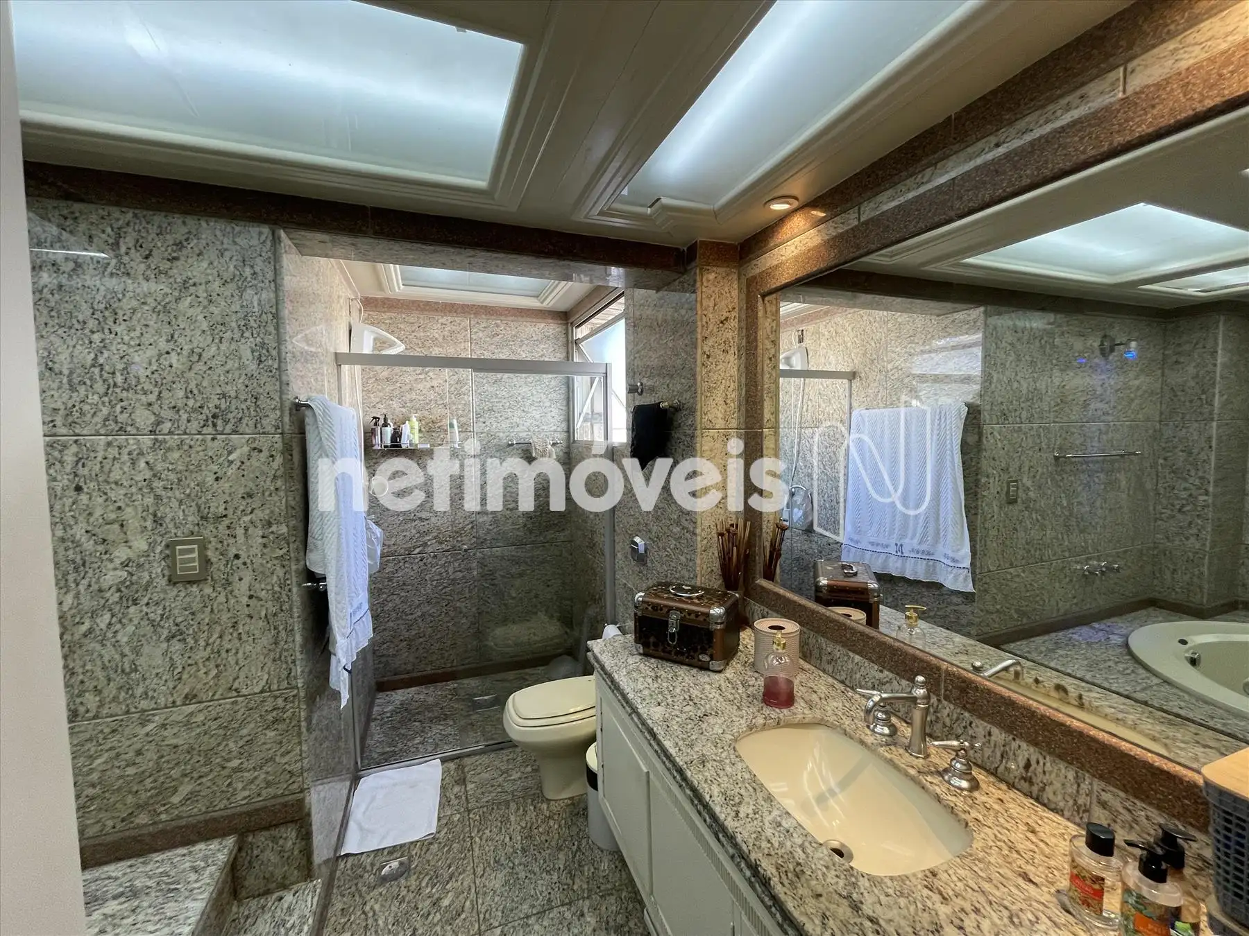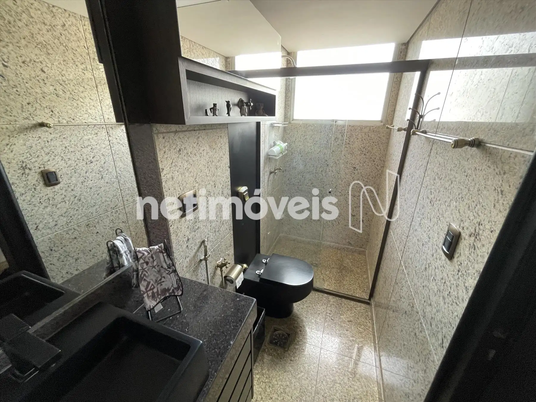 Banheiro social com box e armário;