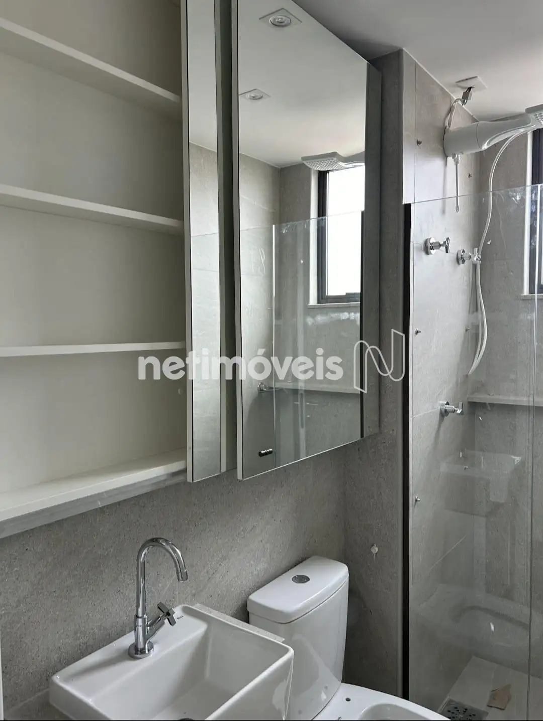 - Banhos social e suíte com armários, espelhos e box