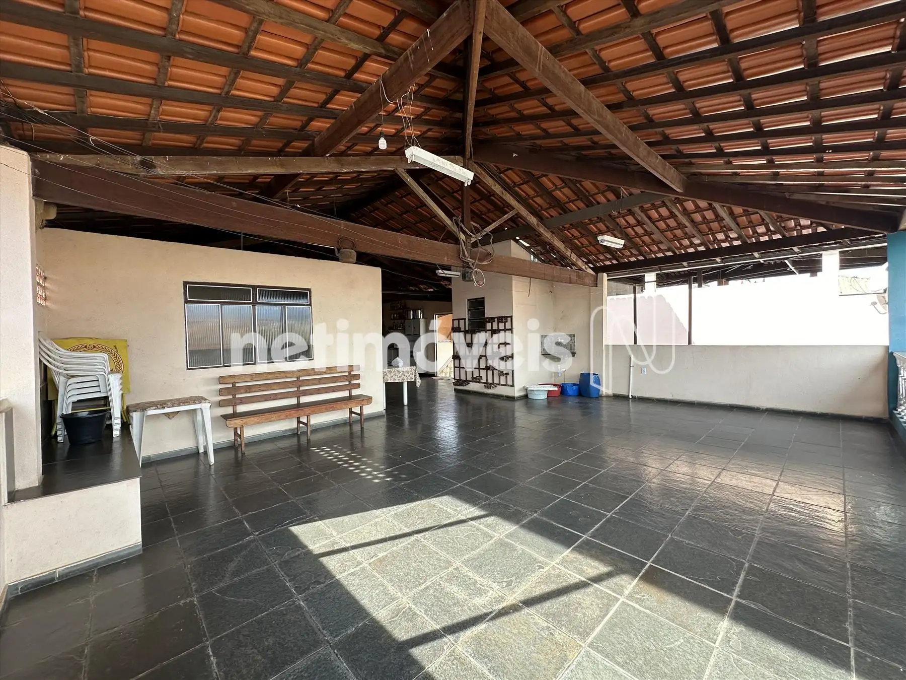 - Terraço amplo com churrasqueira e fogão a lenha;