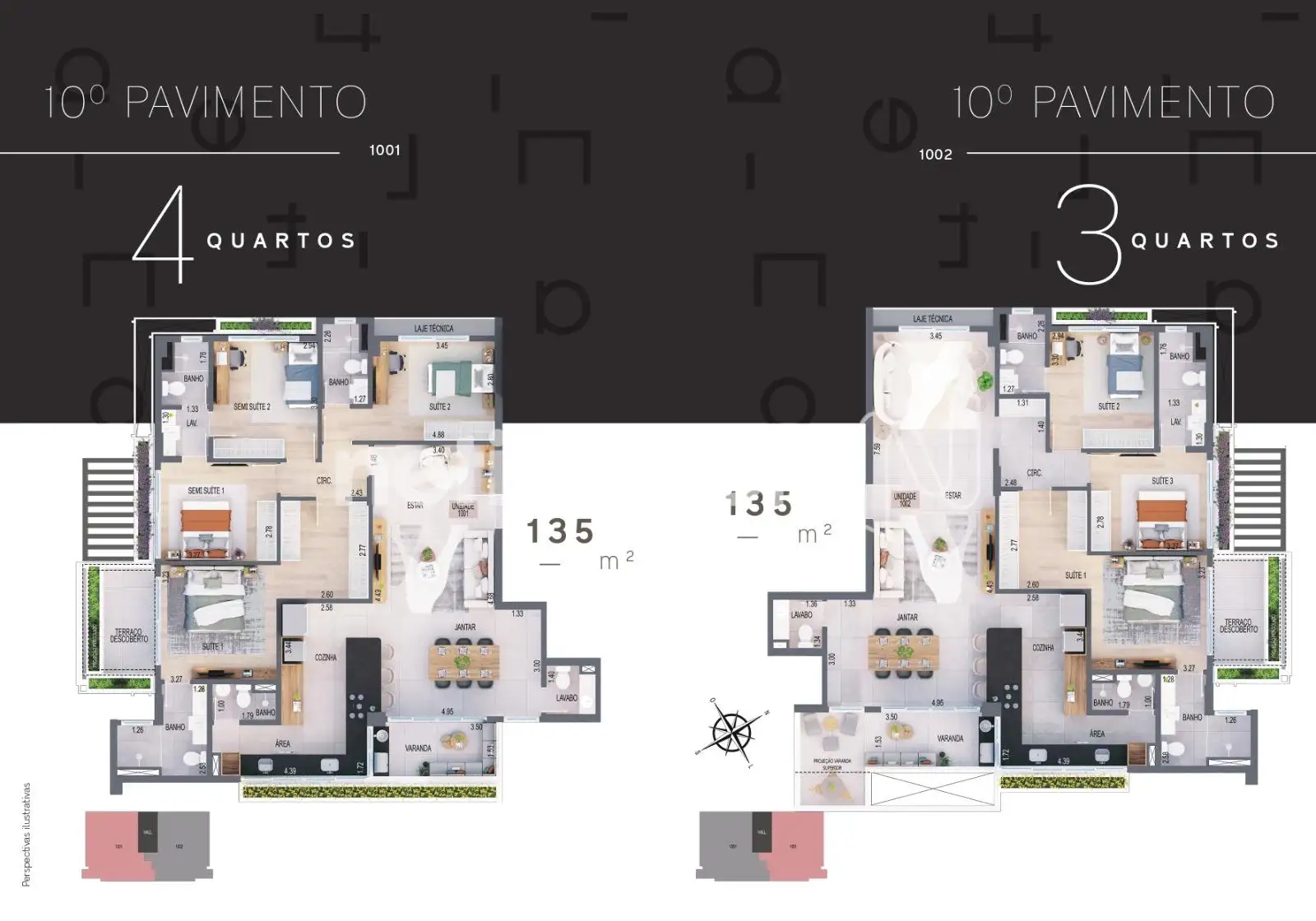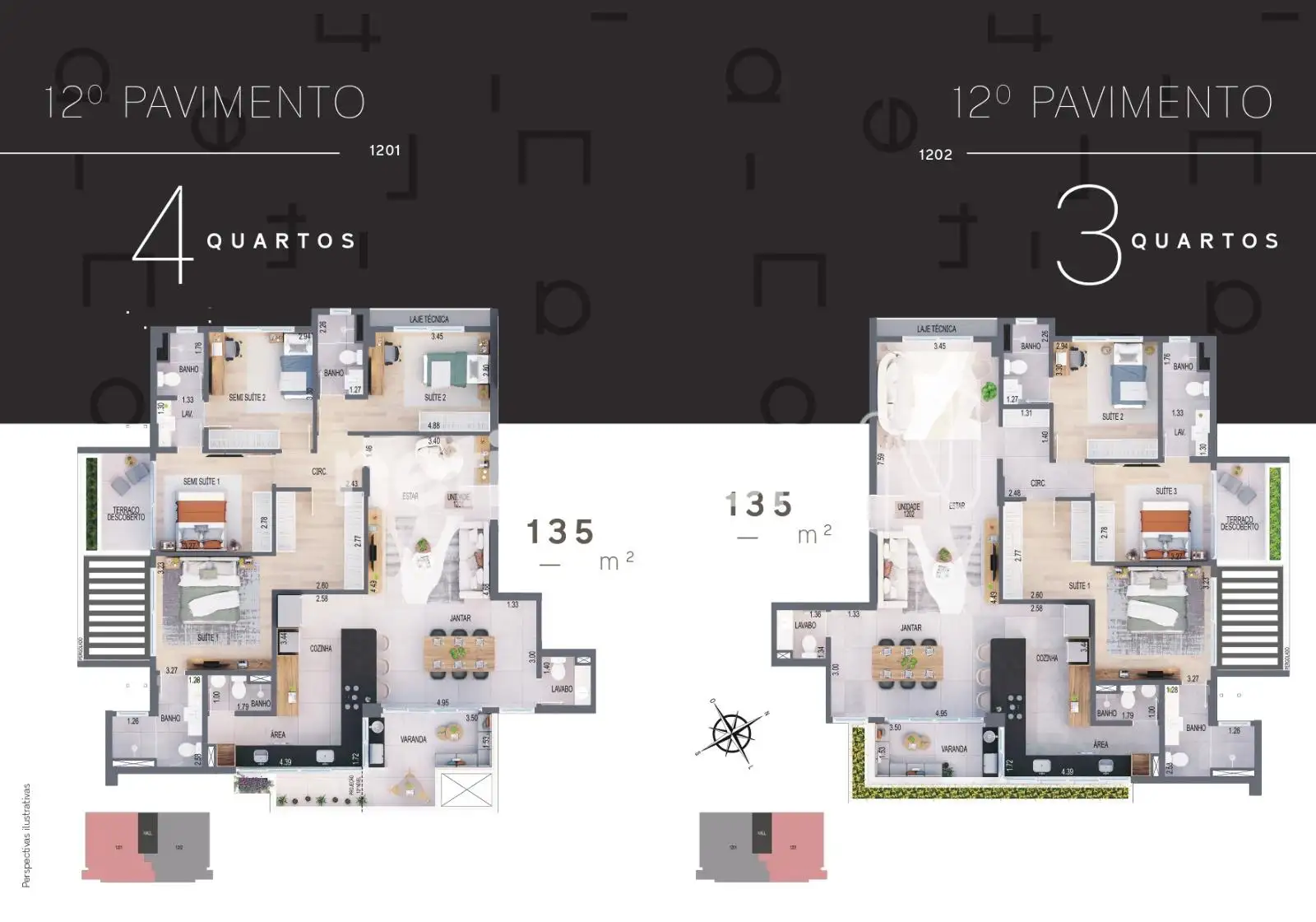 - 04 quartos piso laminado sendo 02 suites e 02 semisuites.