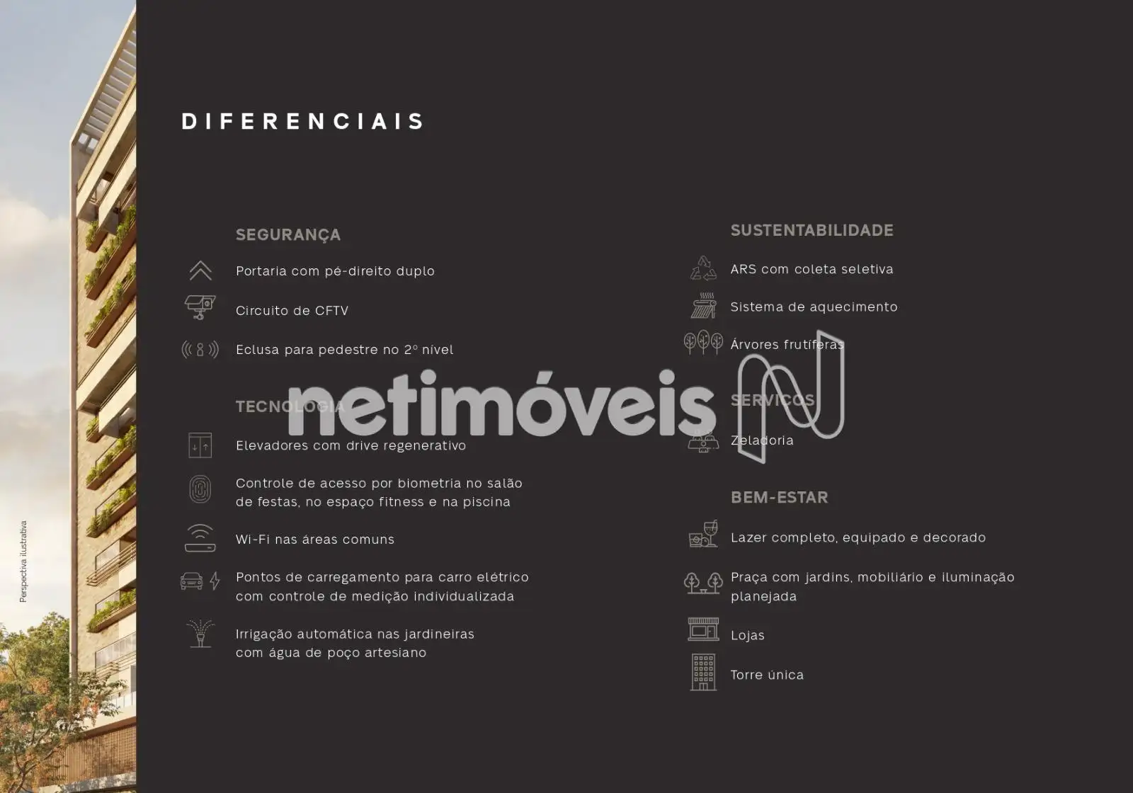 - 100% revestido, portaria virtual, hall social com pé direito duplo, 02 elevadores, salão de festas, espaço gourmet, fitness e kids, piscinas, sauna, playground, praça do fogo, unidades iniciam no 4º andar, 3 níveis de garagem de 2 a 4 vagas, aquecimento solar área social e a gás nos aptos.