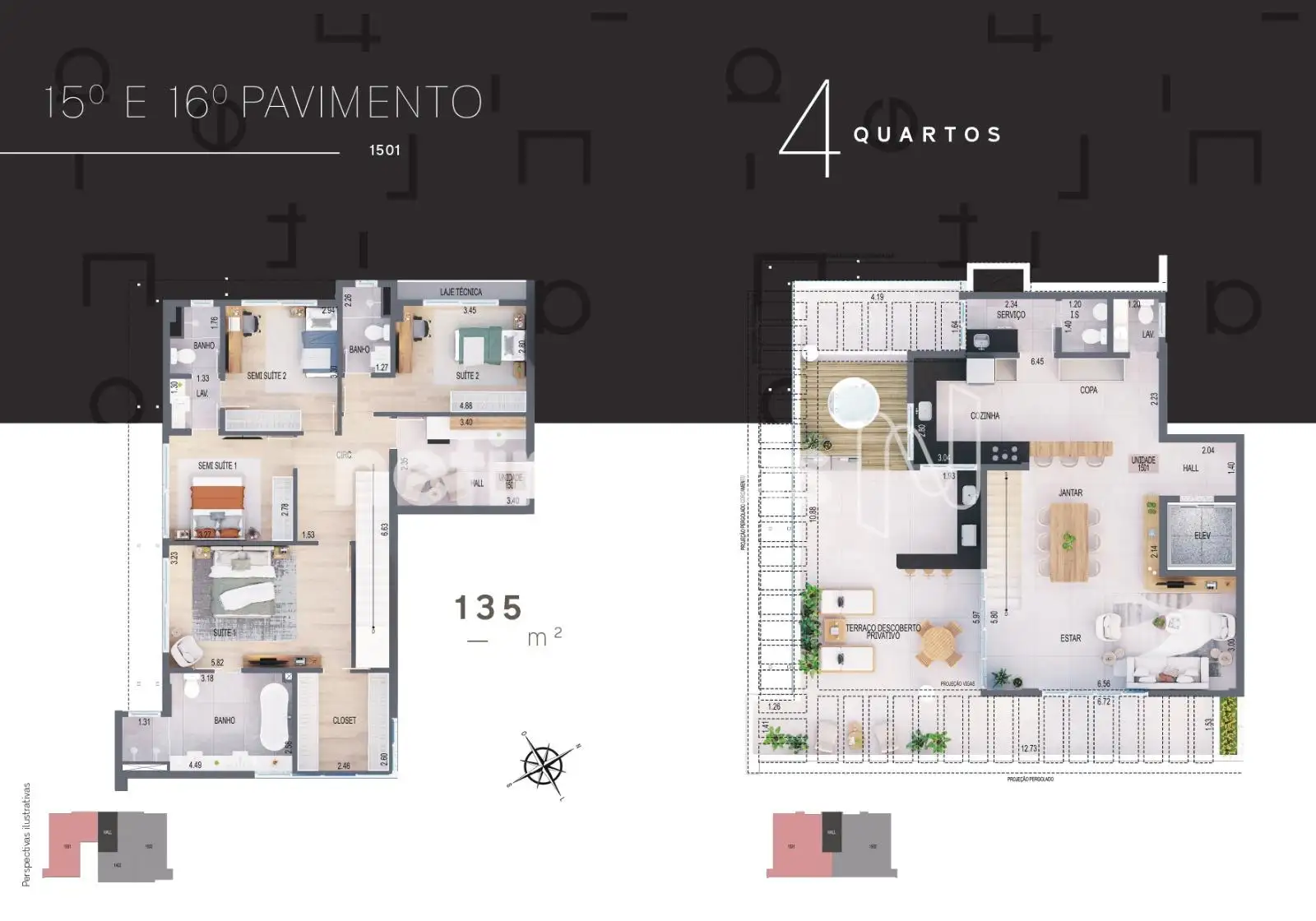 - Área privativa interna 150,20² e área descoberta 4,78m²