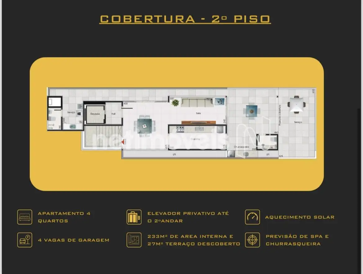- Terraço Externo: 121m², dividido em 2 espaços distintos, ideal para lazer e convivência.