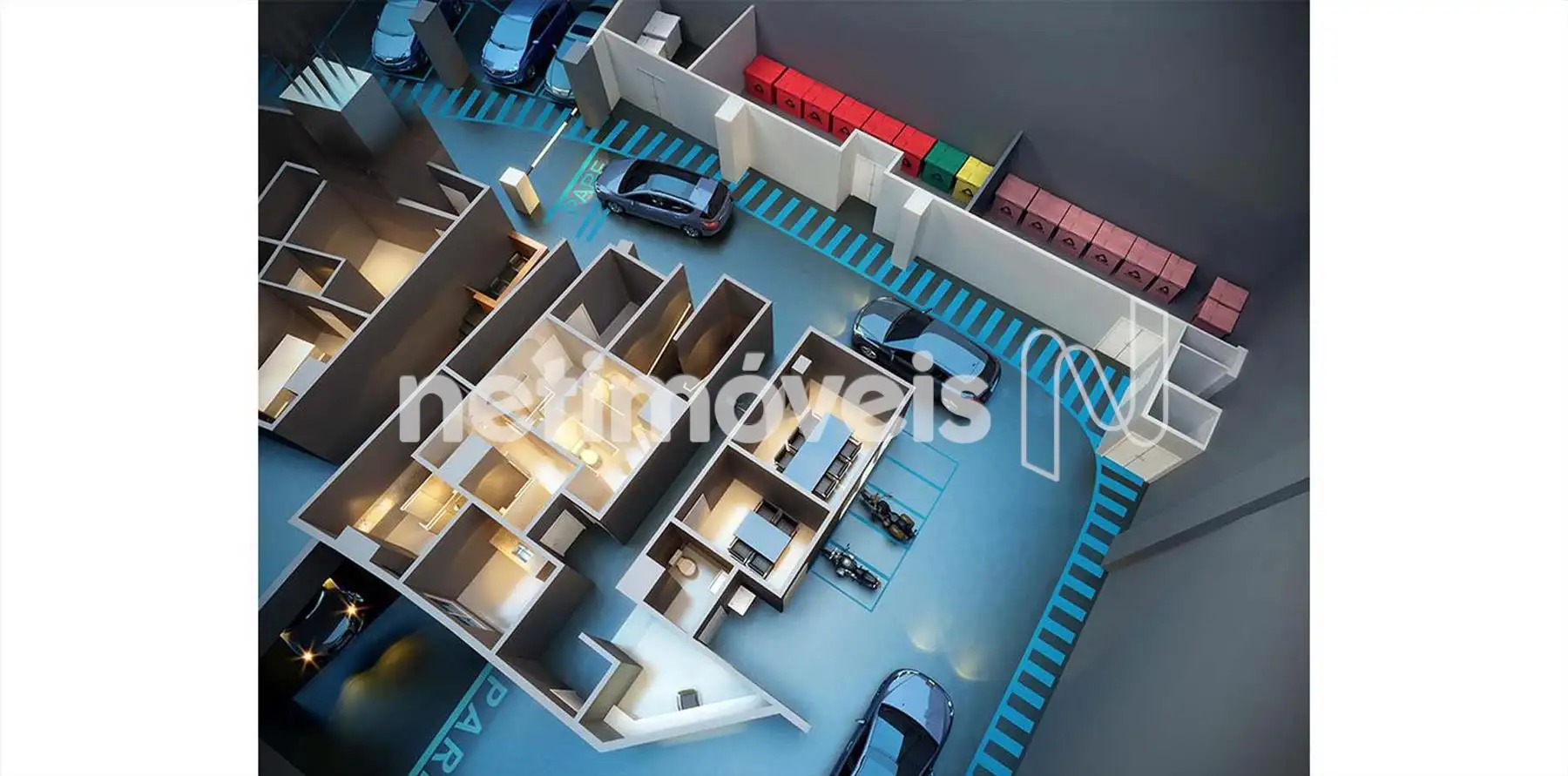 • Garagens com guarita, espaço VIP para espera, expedição, mensageria, administração, vestiário, copa e bicicletário
