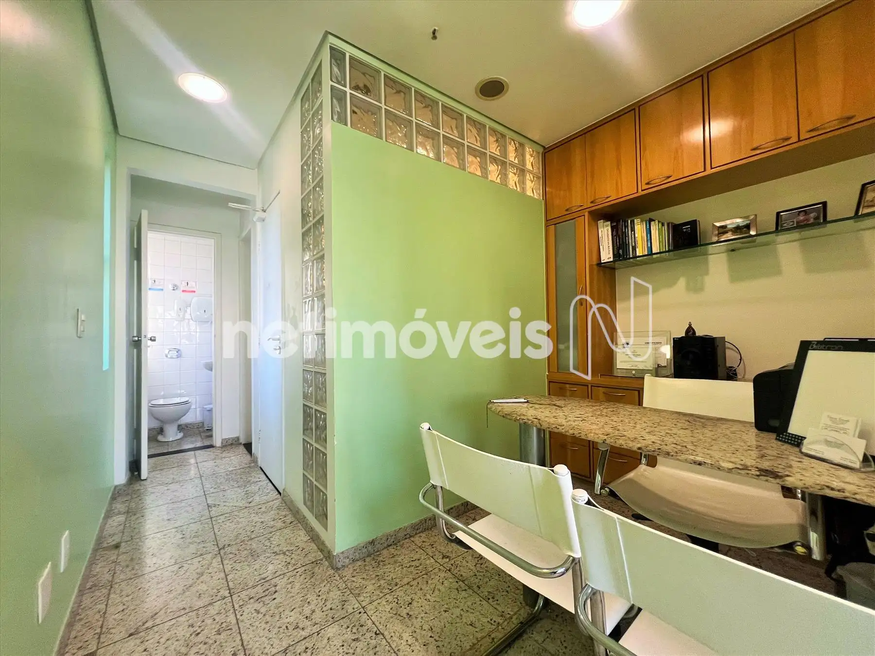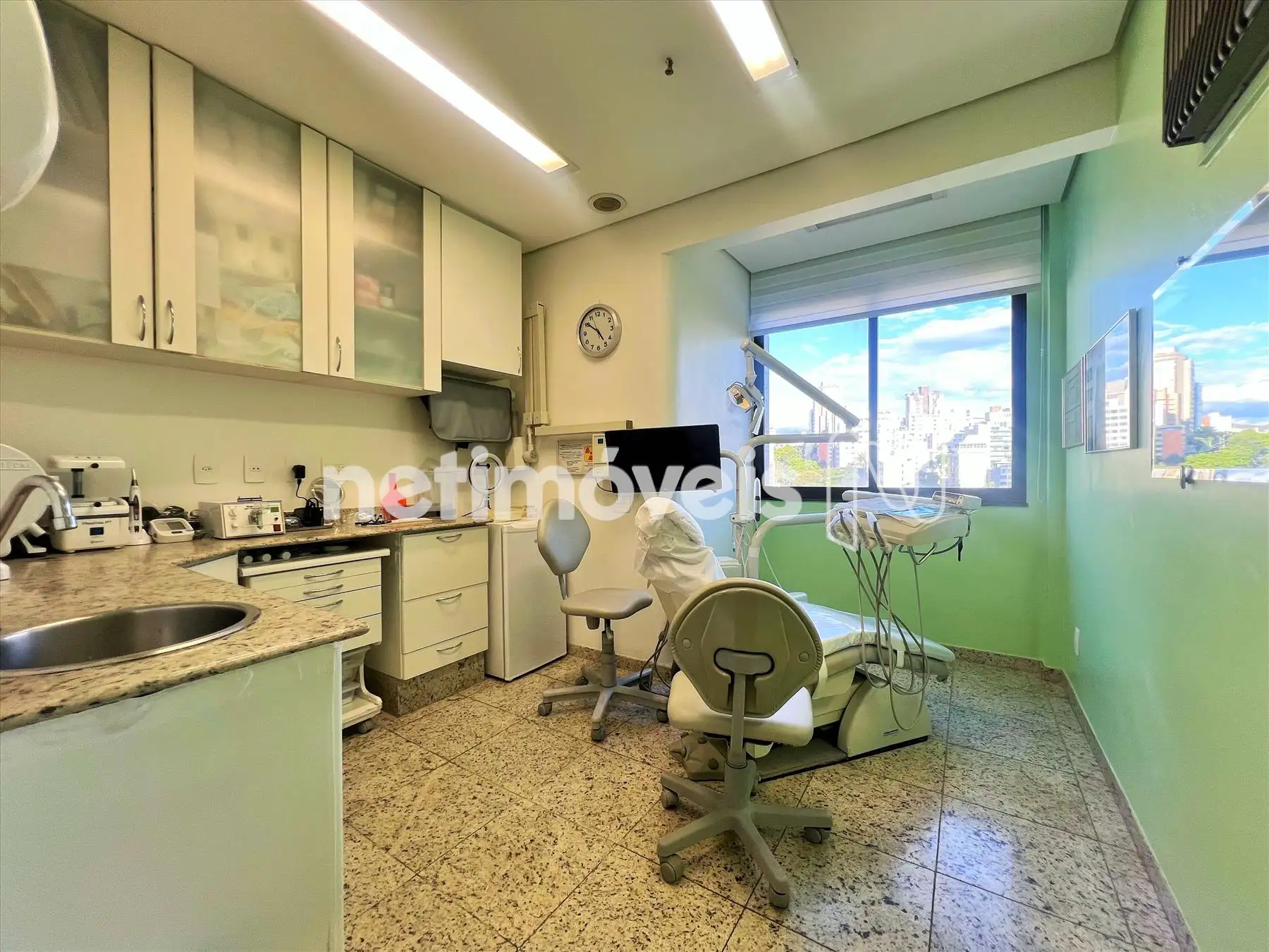 Sala (localizada na rua professor Moraes. Funcionarios / Savassi a um quarteirão do Pátio Savassi), com excelente vista definitiva para a Serra do Curral, muito bem arejada com ventilação cruzada e um vaga de garagem; sendo que a sala tem aproximadamente 30 m² com três ambientes separados: banheiro, sala de espera e sala de esterelização, e dois ambientes semi-separados: sala clínica e escritório. Apresenta muitos armários bem divididos internamente, mesa, piso e bancadas em granito, e toda a infra-estrutura para dentistas sob o piso e paredes; tais como tubulações para compressor, cuspideira e paredes baritadas. A cadeira odontológica com equipo, reflector, cuspideira poderão ou não fazer parte da negociação.