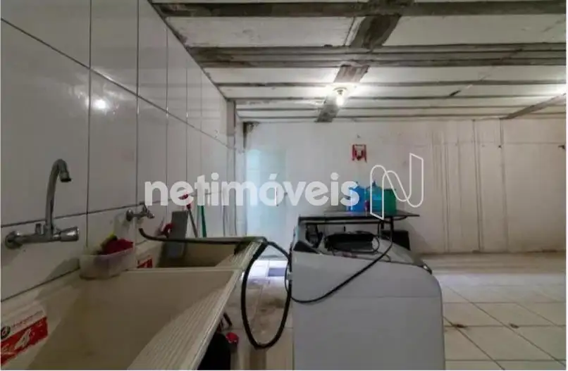 A residência conta com garagem descoberta para dois carros no nível superior e um vasto espaço na parte inferior, com capacidade para até oito veículos e entrada para um pequeno caminhão. A lavanderia é ampla, com banheiro e box, garantindo praticidade no dia a dia.