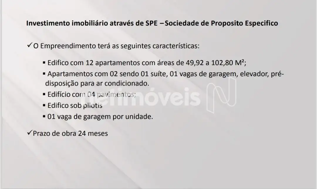Prédio individual torre única, com 12 apartamentos, sendo 03 por andar e com as seguintes características: