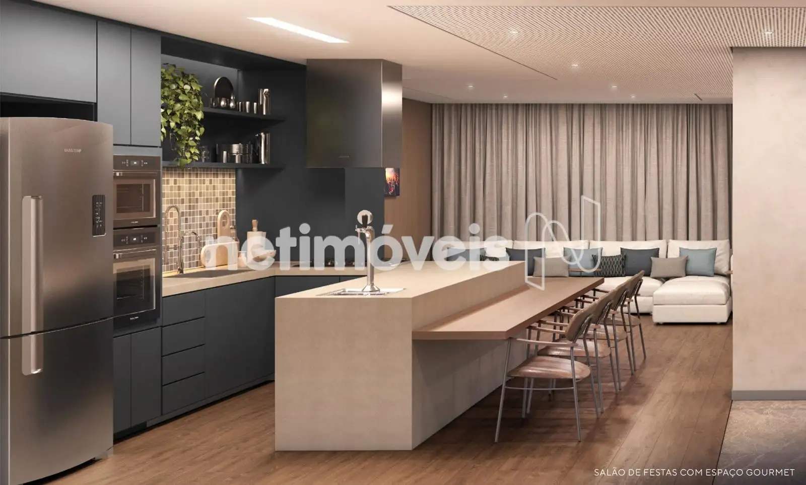 - Sala para 3 ambientes, com home cinema;