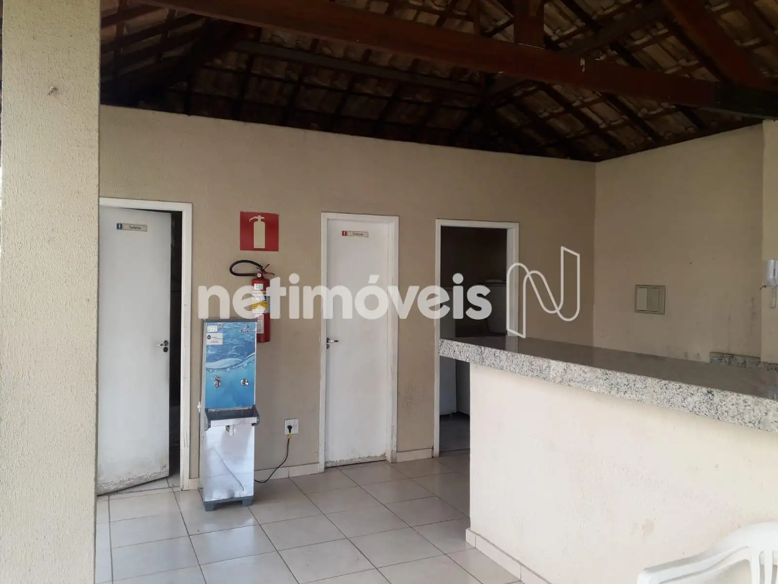 segundo piso: Hall, 1 quarto, 1 banheiro com armários, box, área livre com churrasqueira e armários, ducha,