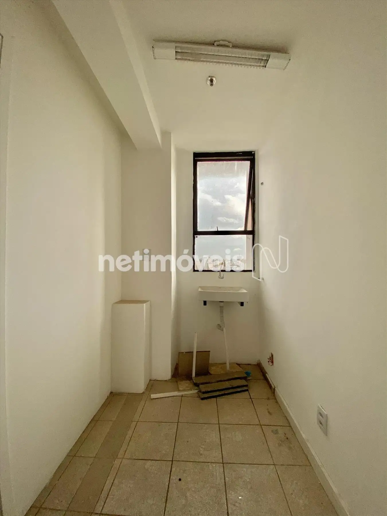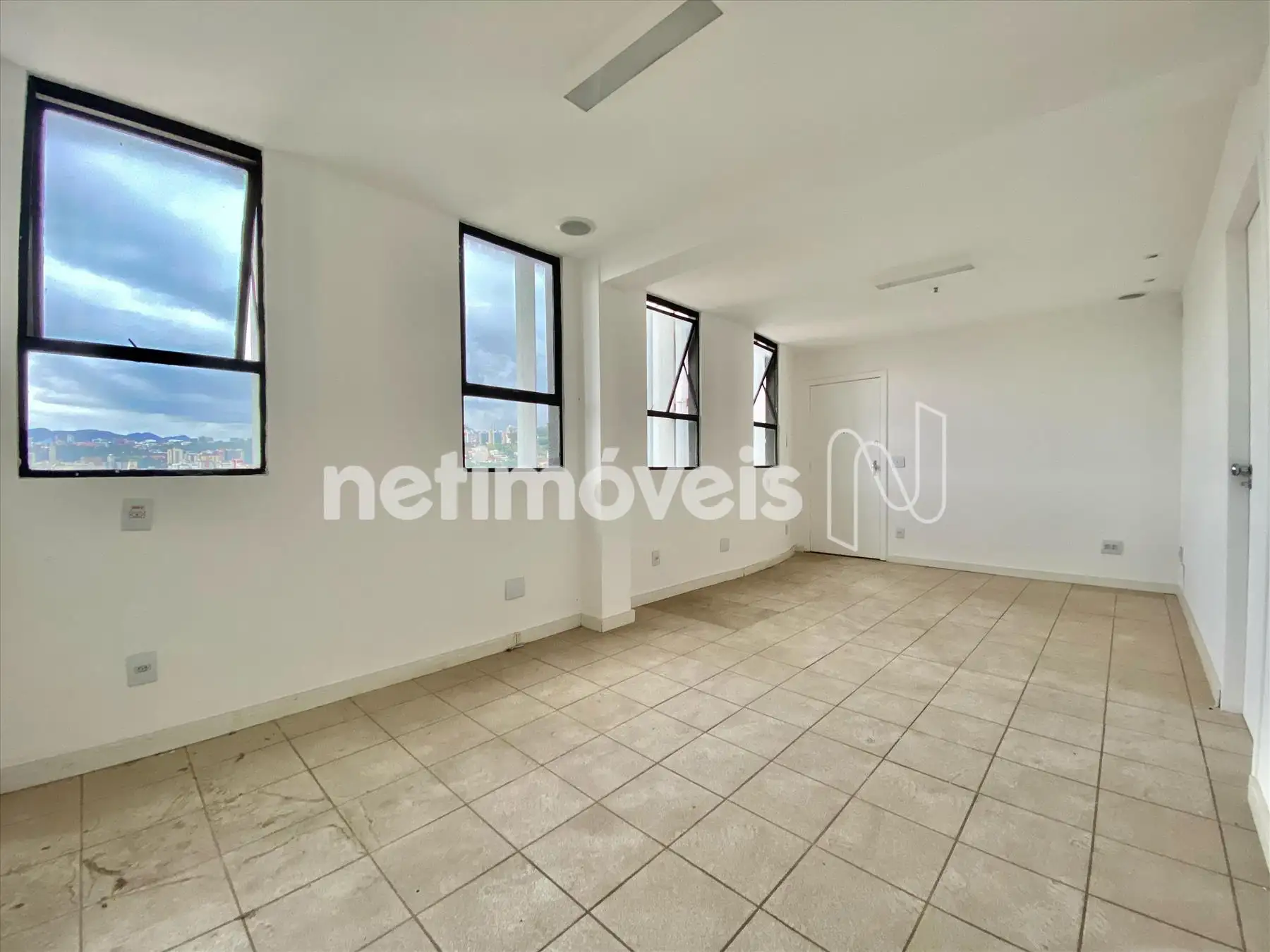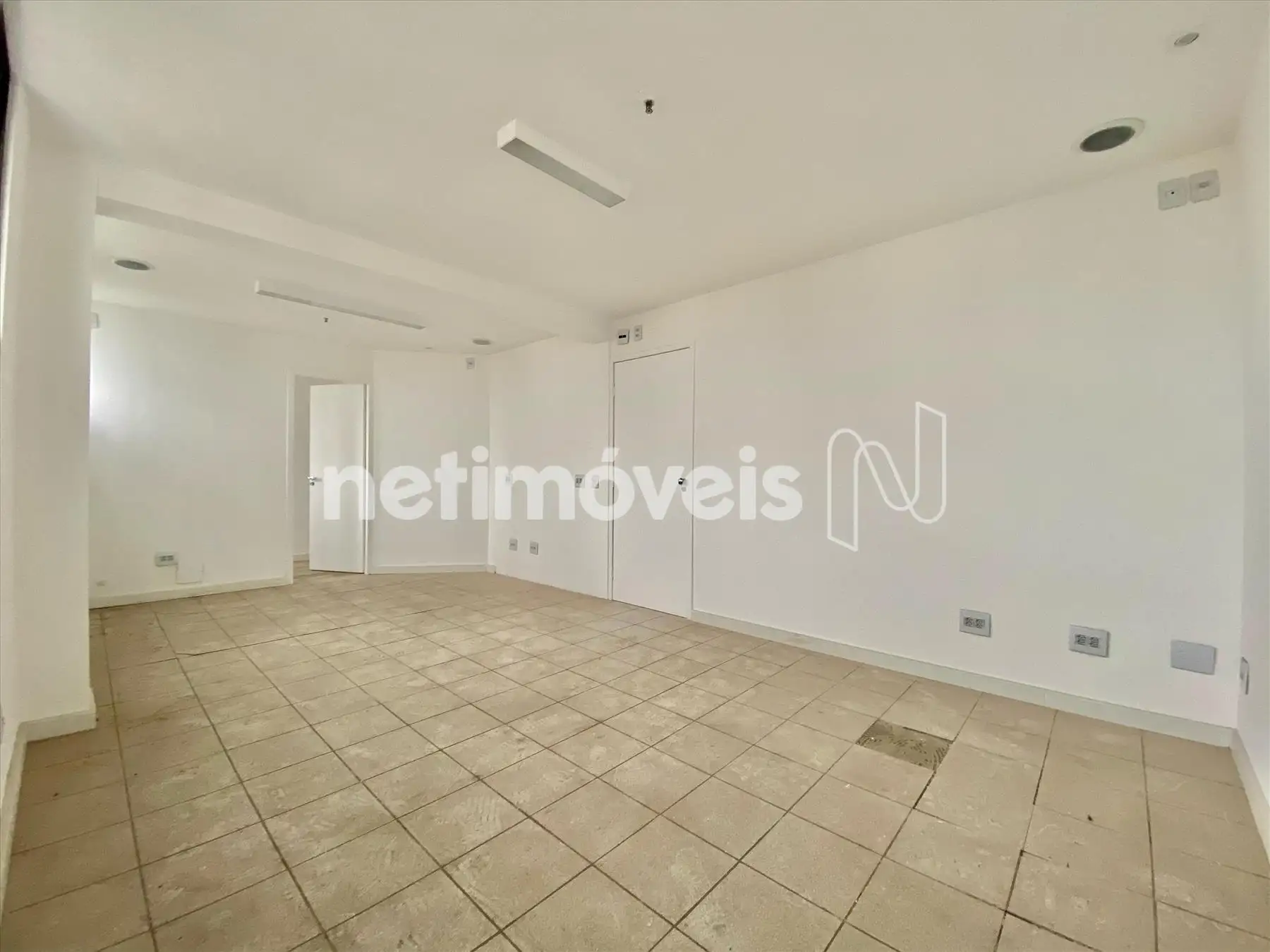 Sala ampla com aproximadamente 81 m², piso em ceramica, banheiro e copa.