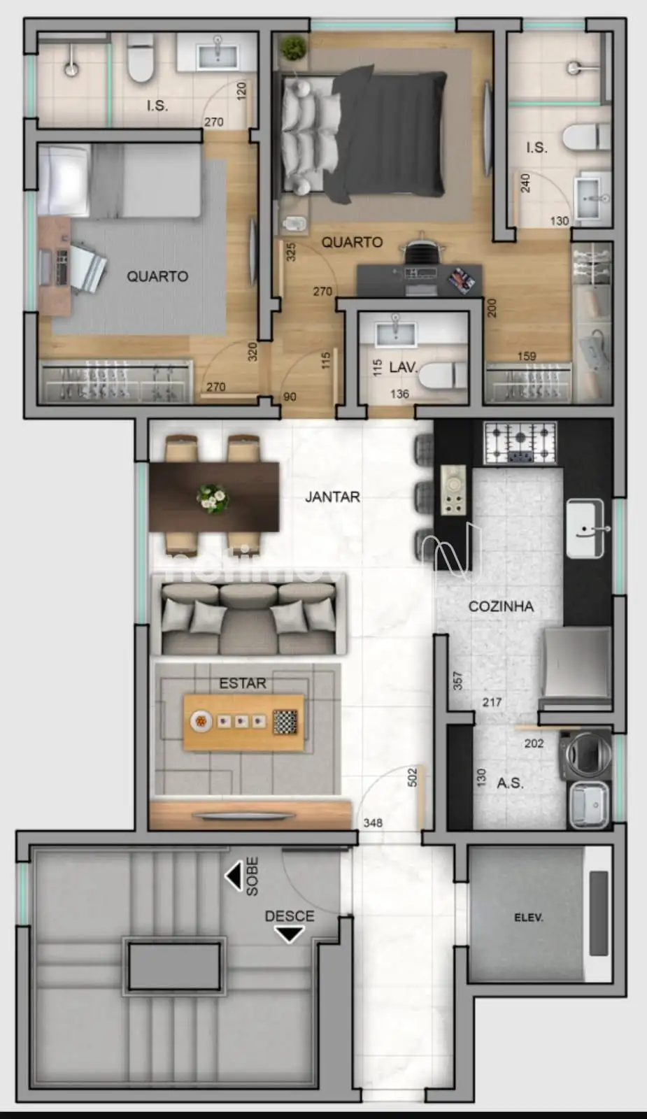 - 01 sala, para 02 ambientes.
