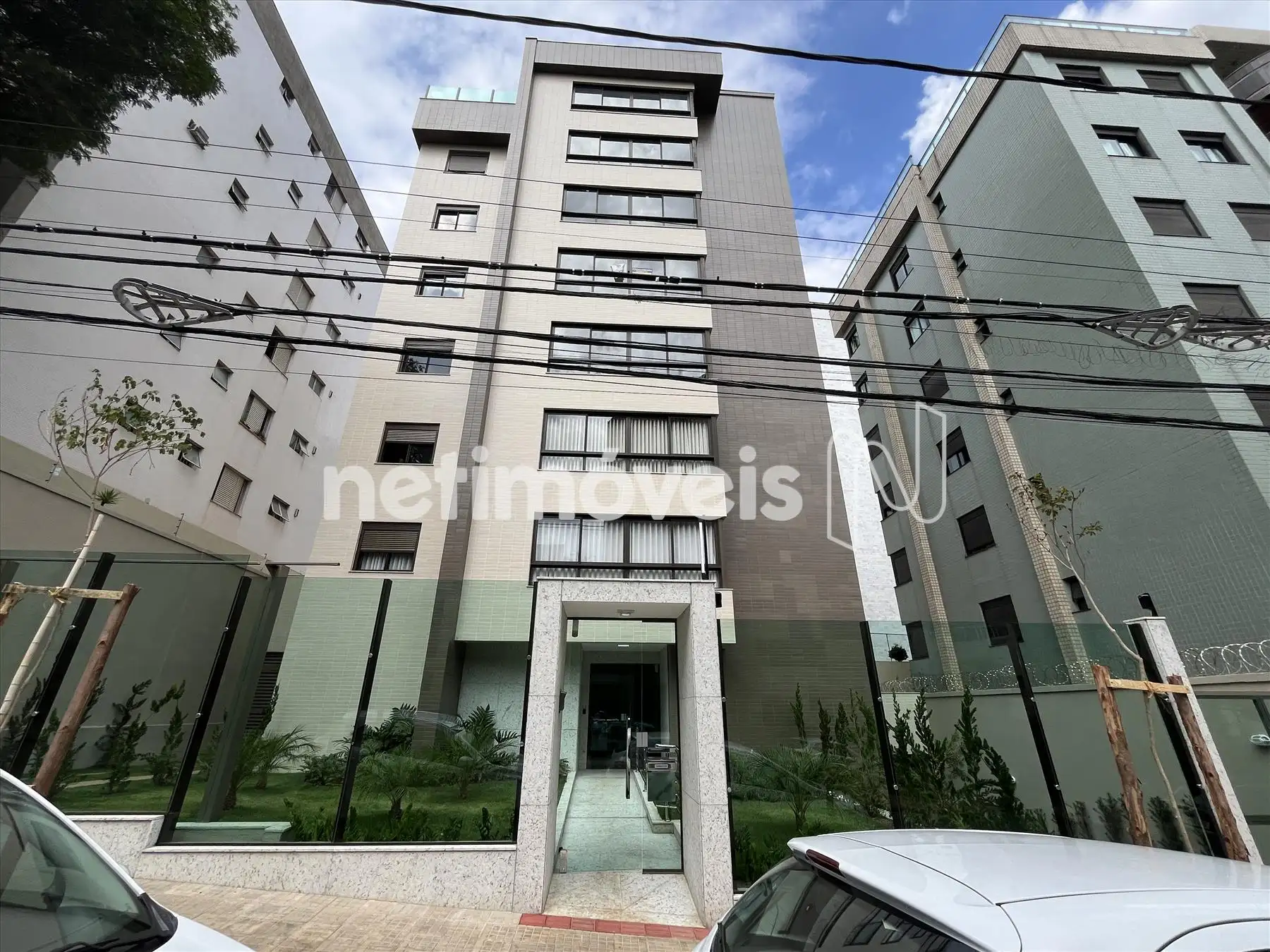 Prédio imponente, com fachada revestida e acabamento de alto nível.