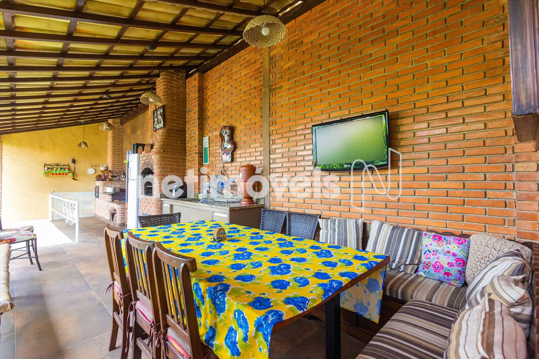 * Espaço gourmet com forno e fogão a lenha, churrasqueira e banheiro.