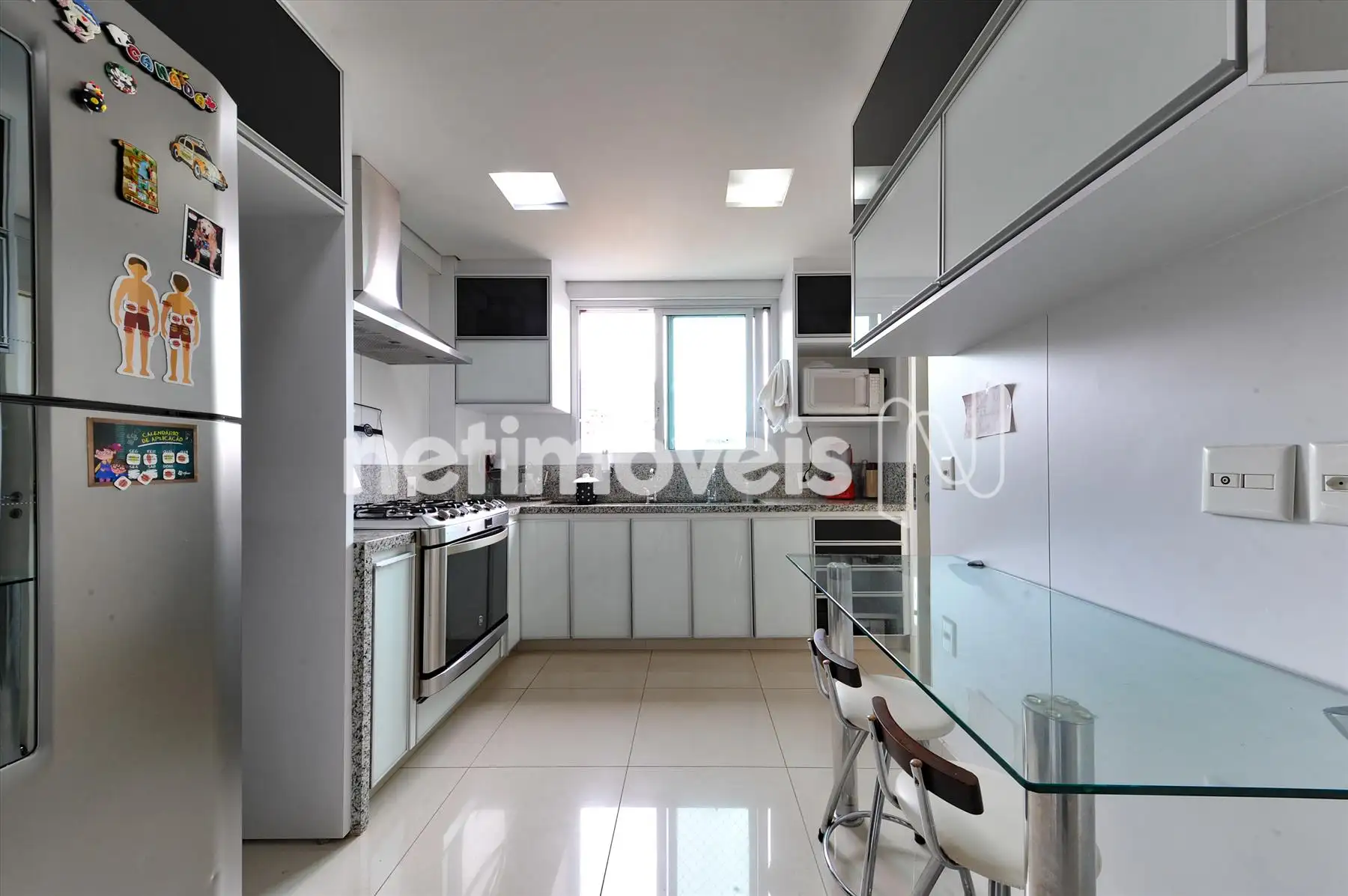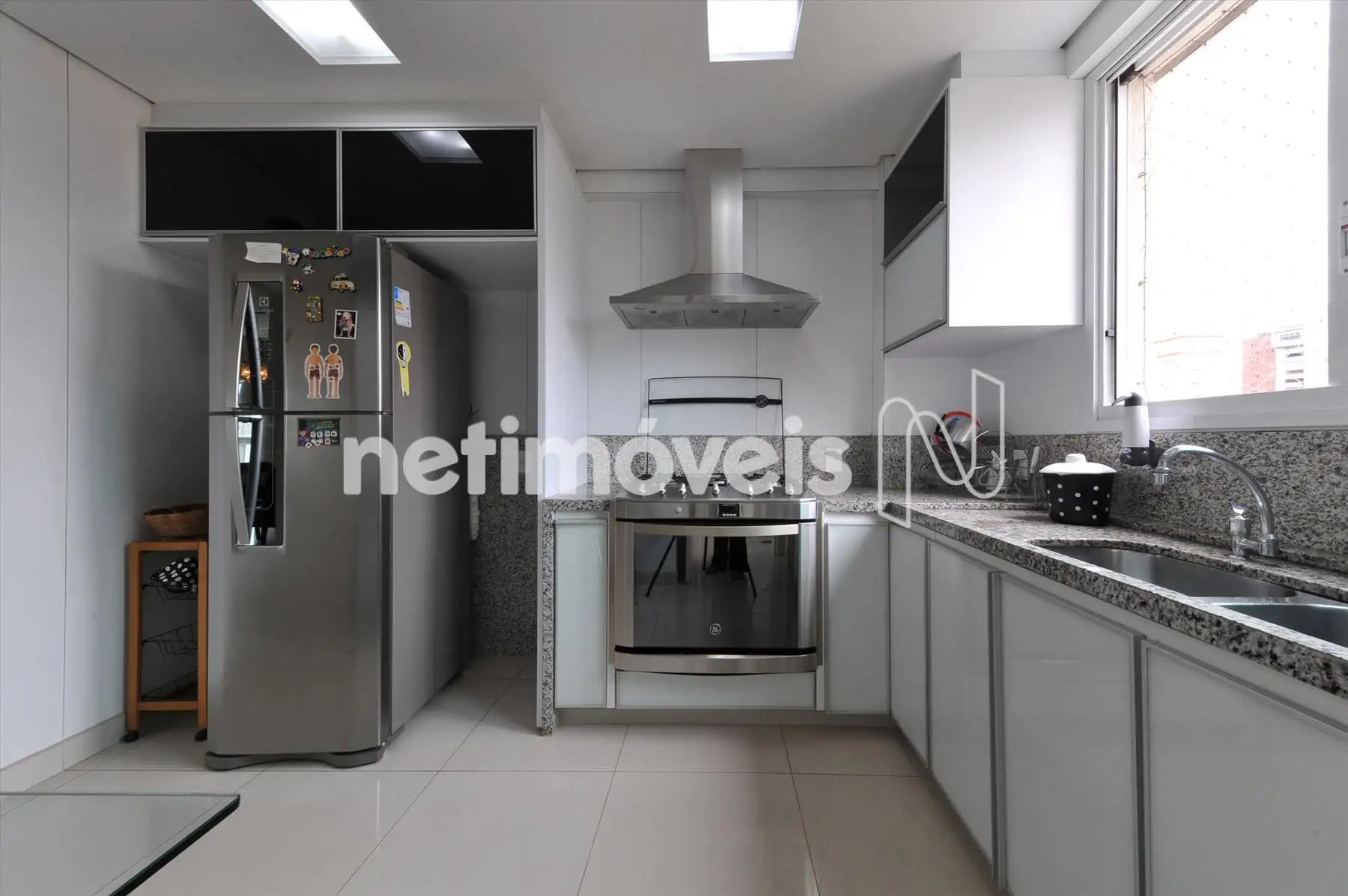 - Cozinha planejada, armários, fogão, coifa, 02 bojos nas bancadas.