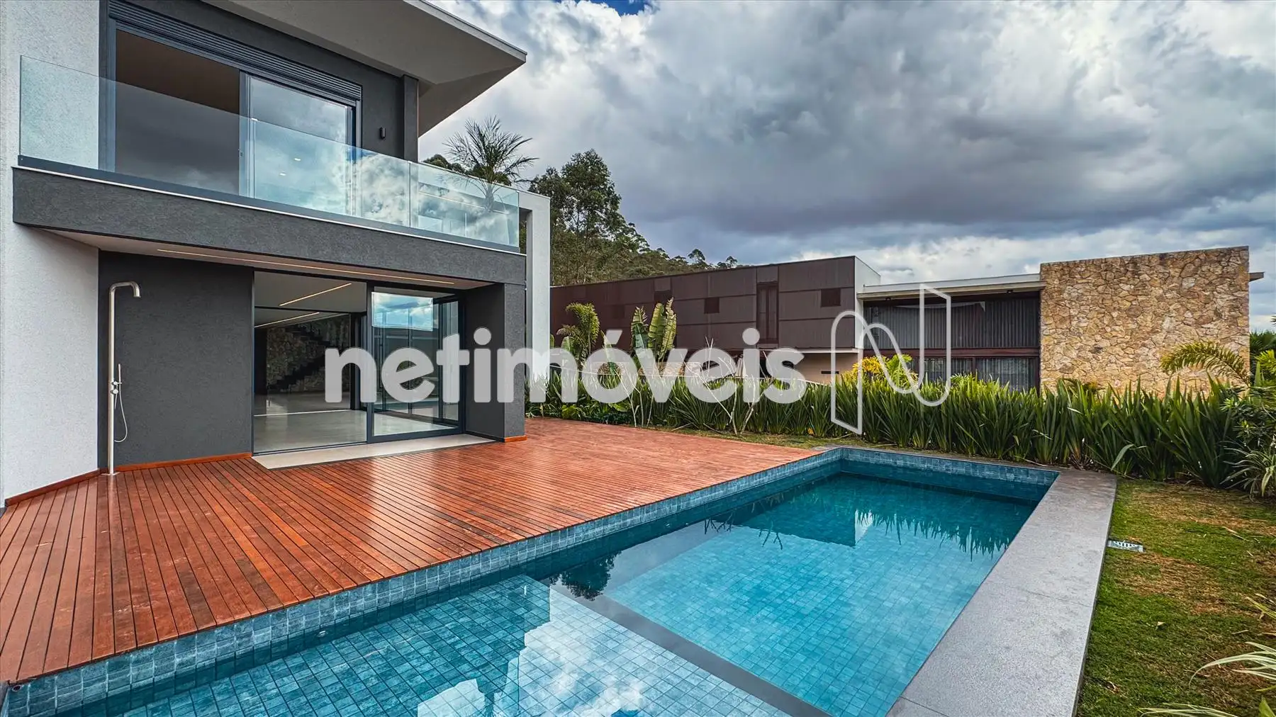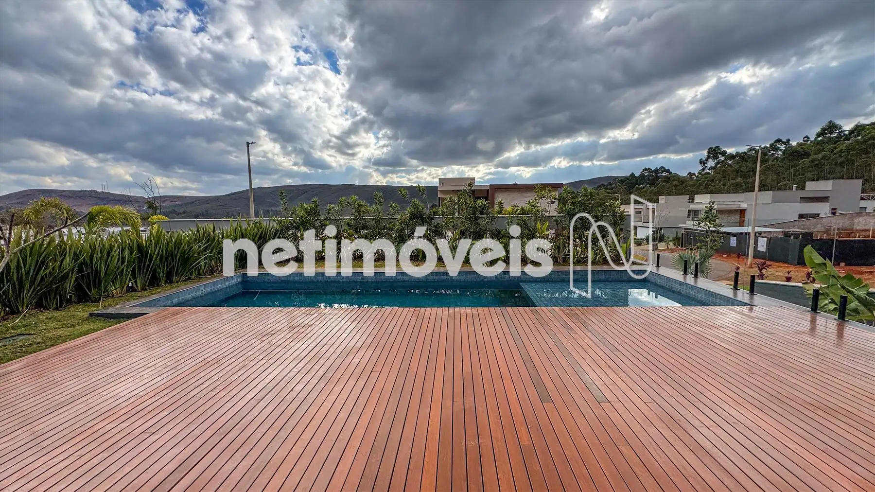 Piscina aquecida com deck em madeira ipê.