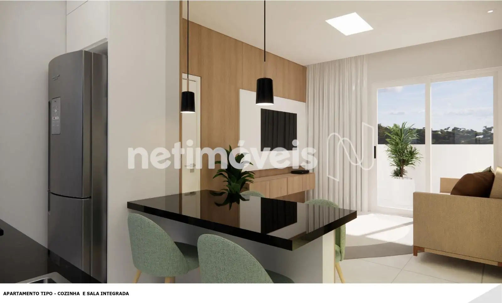 Bancadas: Porcelanato – Janelas: Vidro Temperado – Portas: Madeira;