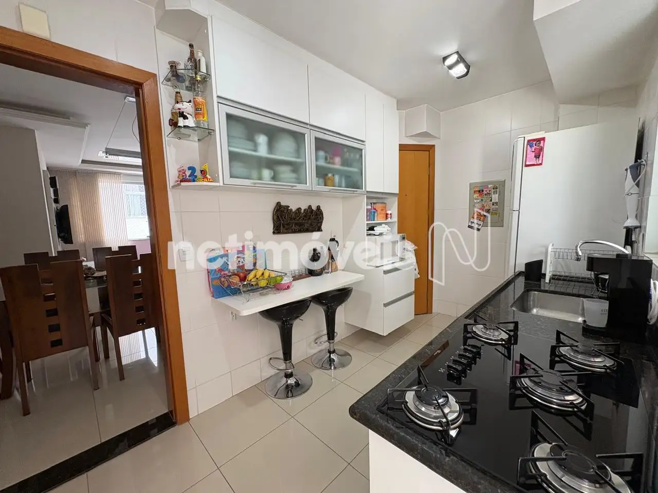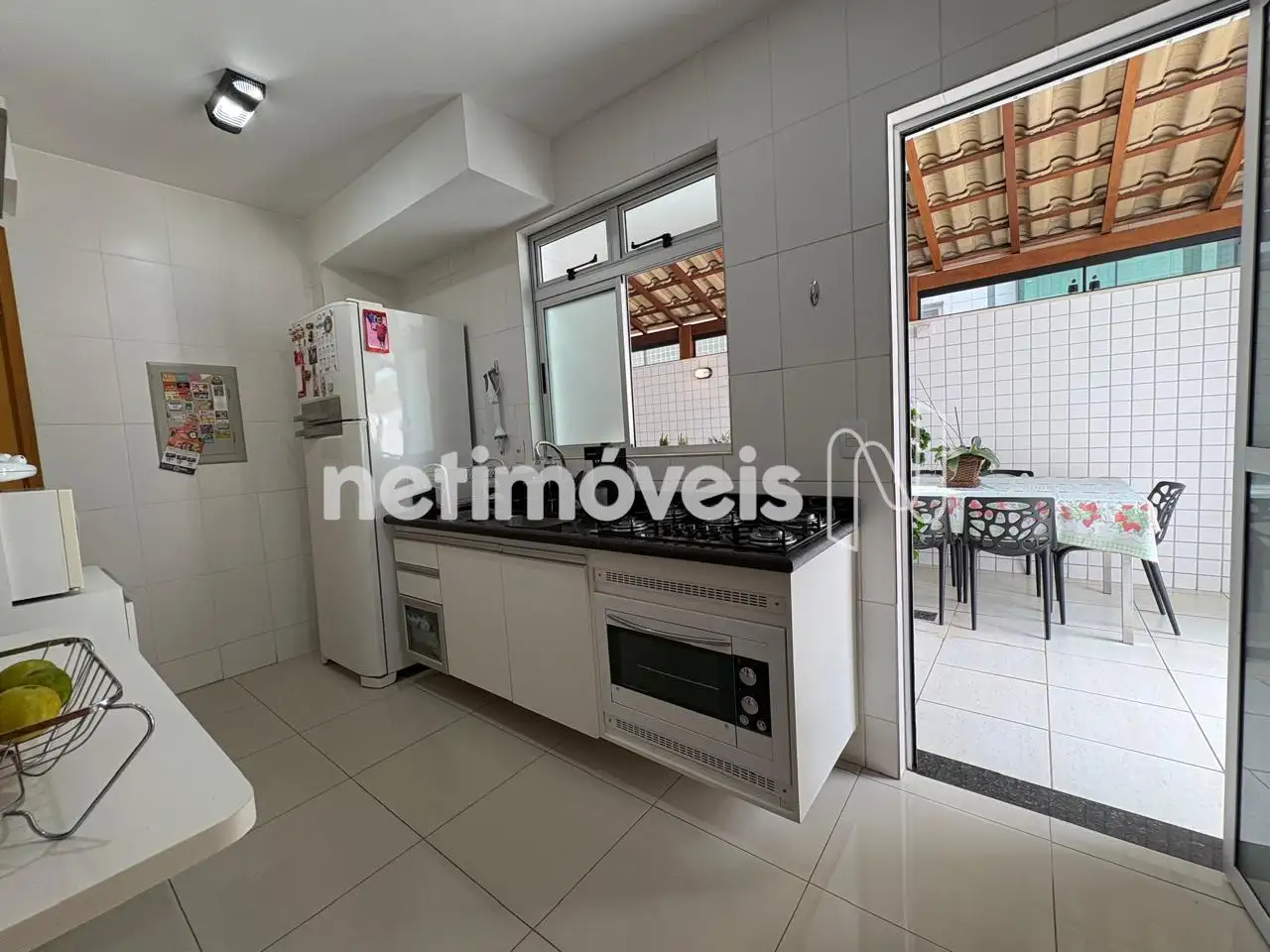 Cozinha equipada com armários planejados, cooktop e forno embutido.