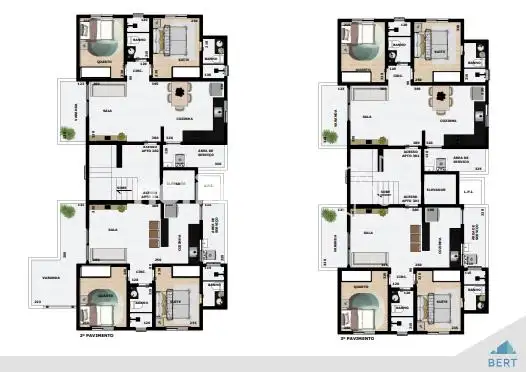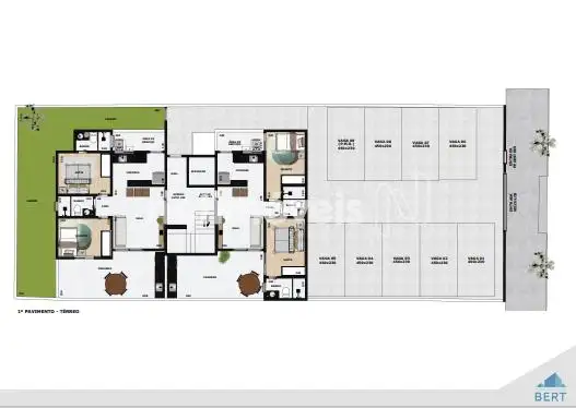 02 Apartamentos Área Privativa: 01 Vaga de garagem, 02 Quartos sendo 01 com suíte, Banho, Sala, Cozinha, Área de Serviço e Área privativa;