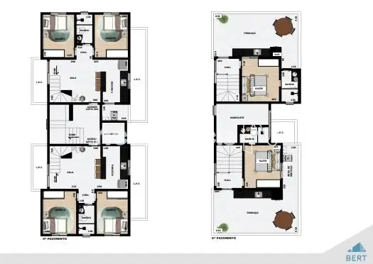 02 Apartamentos Cobertura: 01 vagas de garagem, 03 Quartos sendo 01 com suíte, Banho, Sala, Cozinha, Área de Serviço e Terraço;