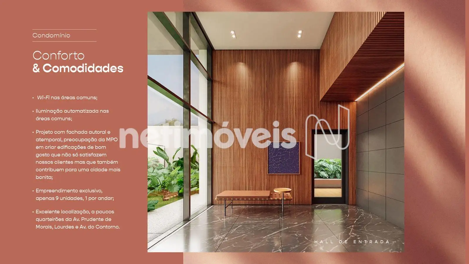 O prédio, de arquitetura moderna e elegante, conta com um hall de entrada sofisticado, proporcionando uma recepção de alto padrão. Além disso, a cobertura e o terraço oferecem uma vista maravilhosa e espaços perfeitos para momentos de lazer.