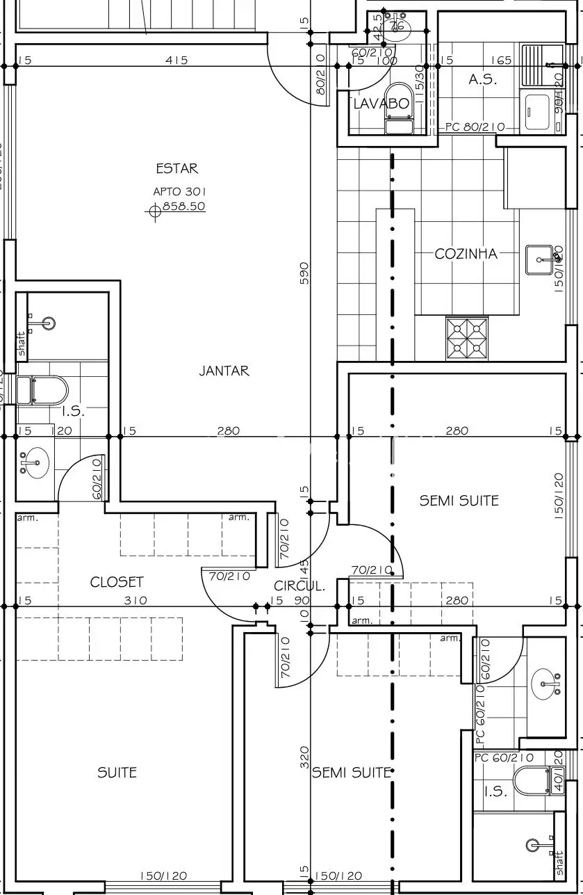 - 3 quartos sendo 1 suíte com closet e 2 semi suítes