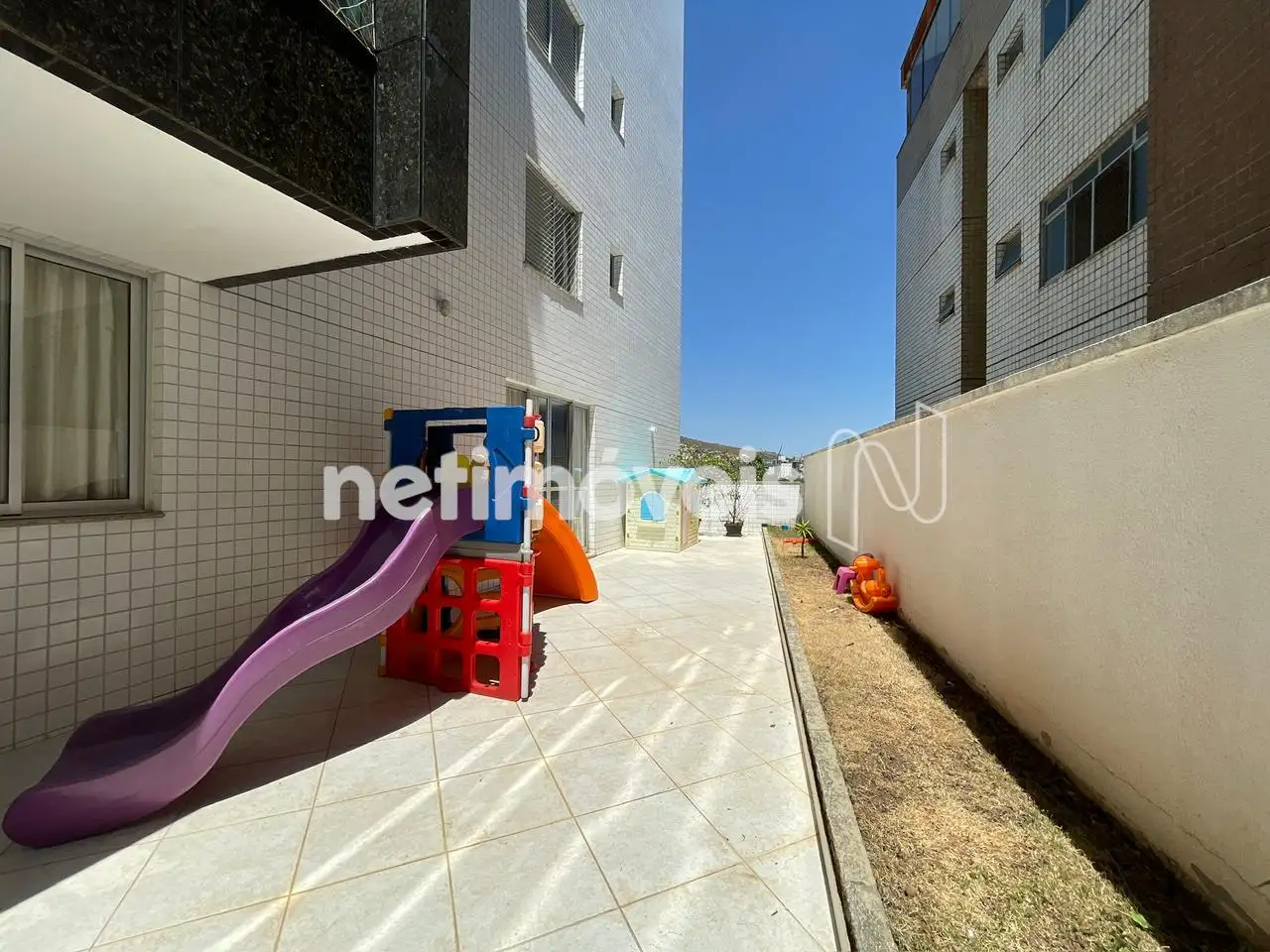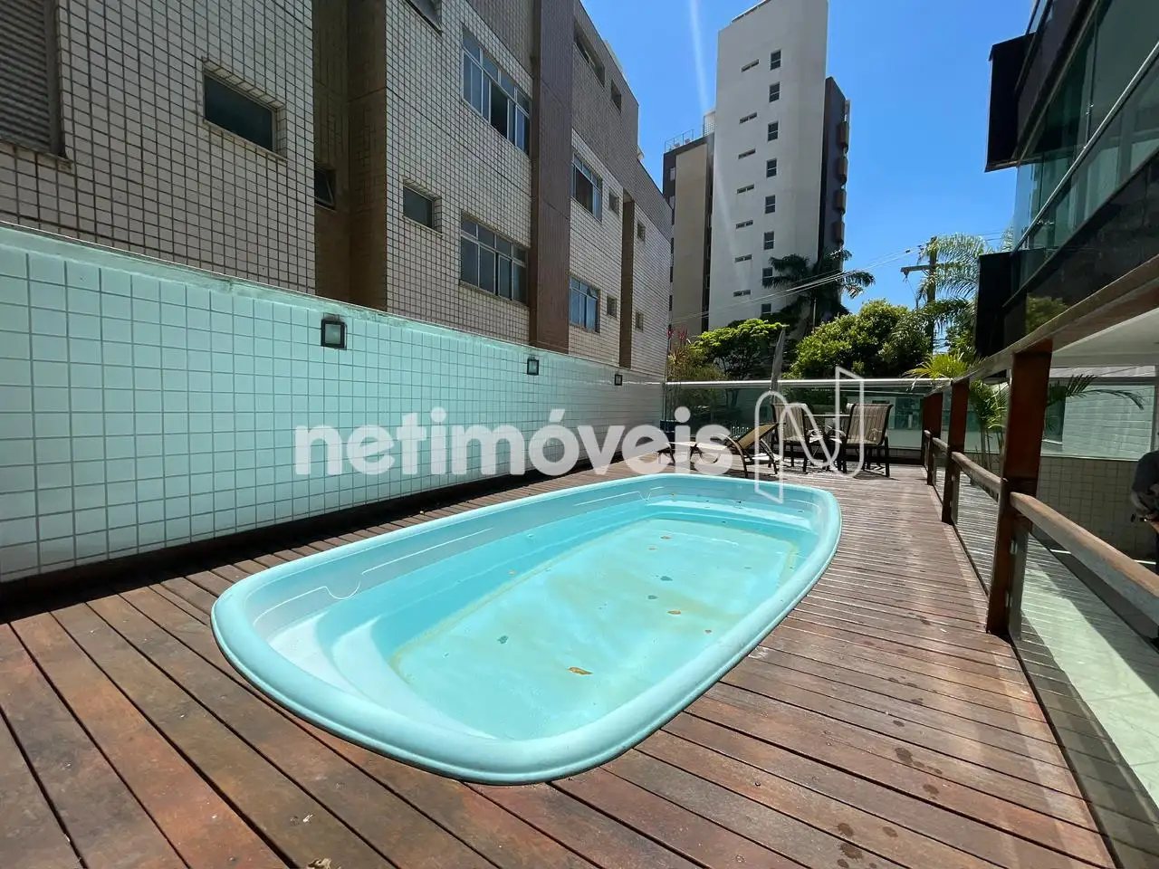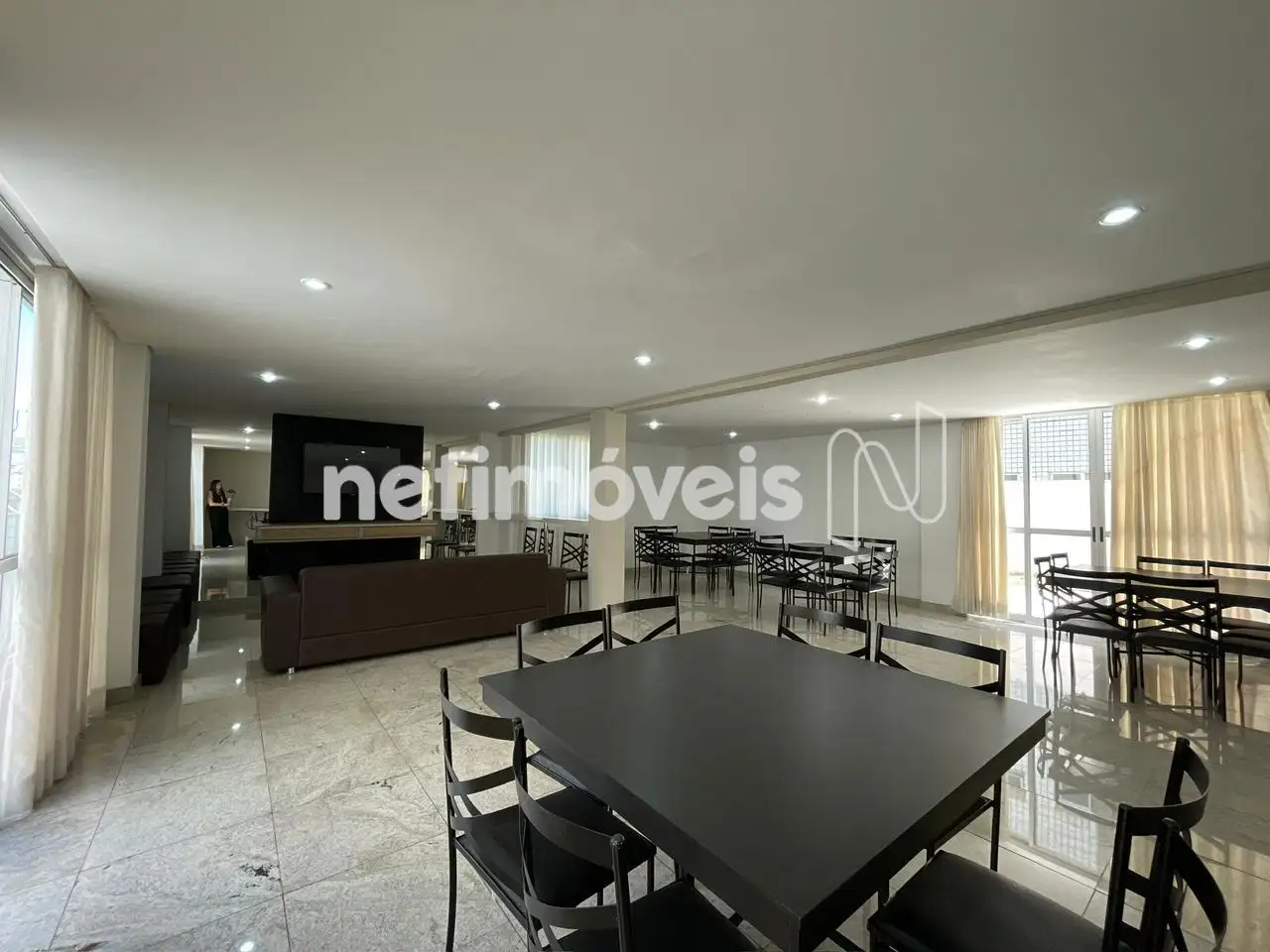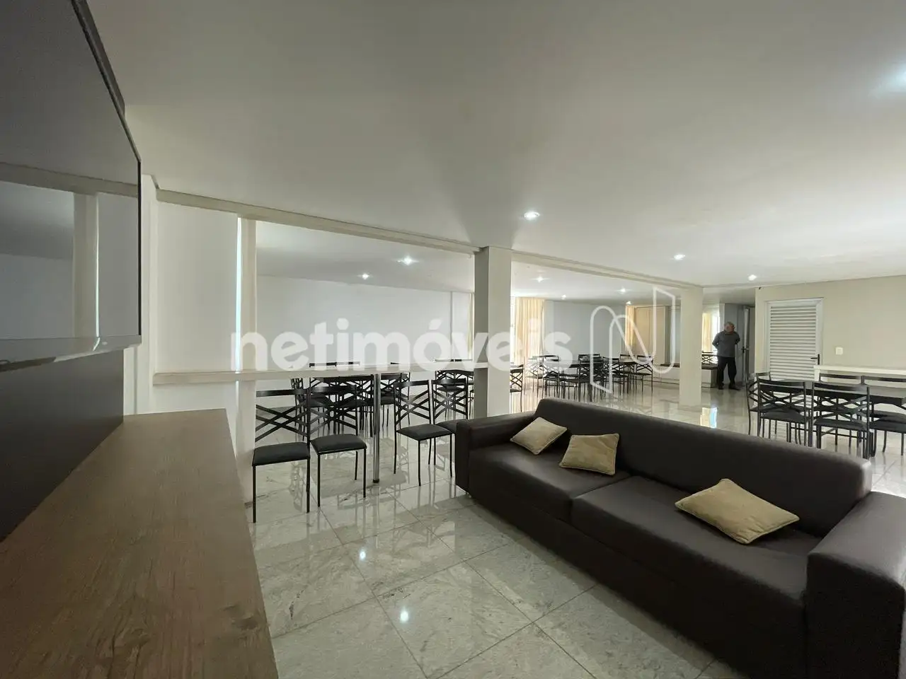 Prédio com elevador, piscina, sauna, salão de festas.