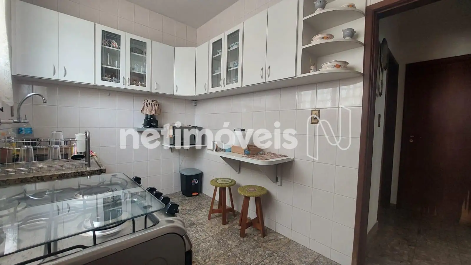 Cozinha com piso e bancada em granito. Armários planejados sob a pia e em toda extensão da parede da cozinha. Cerâmica nas paredes até ao teto.