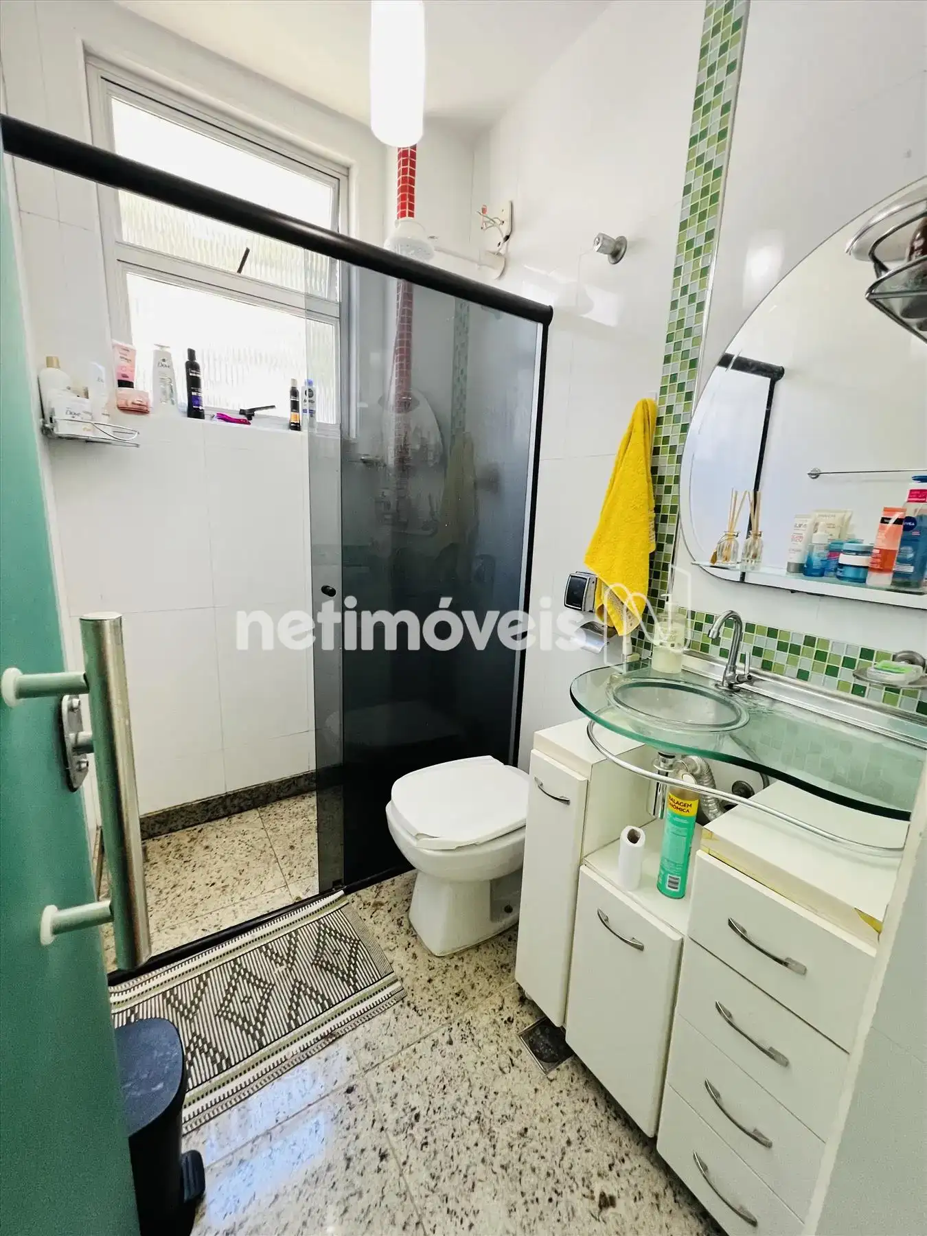 - Banheiro com box blindex, piso em cerâmica, paredes azulejadas até o teto e armário;