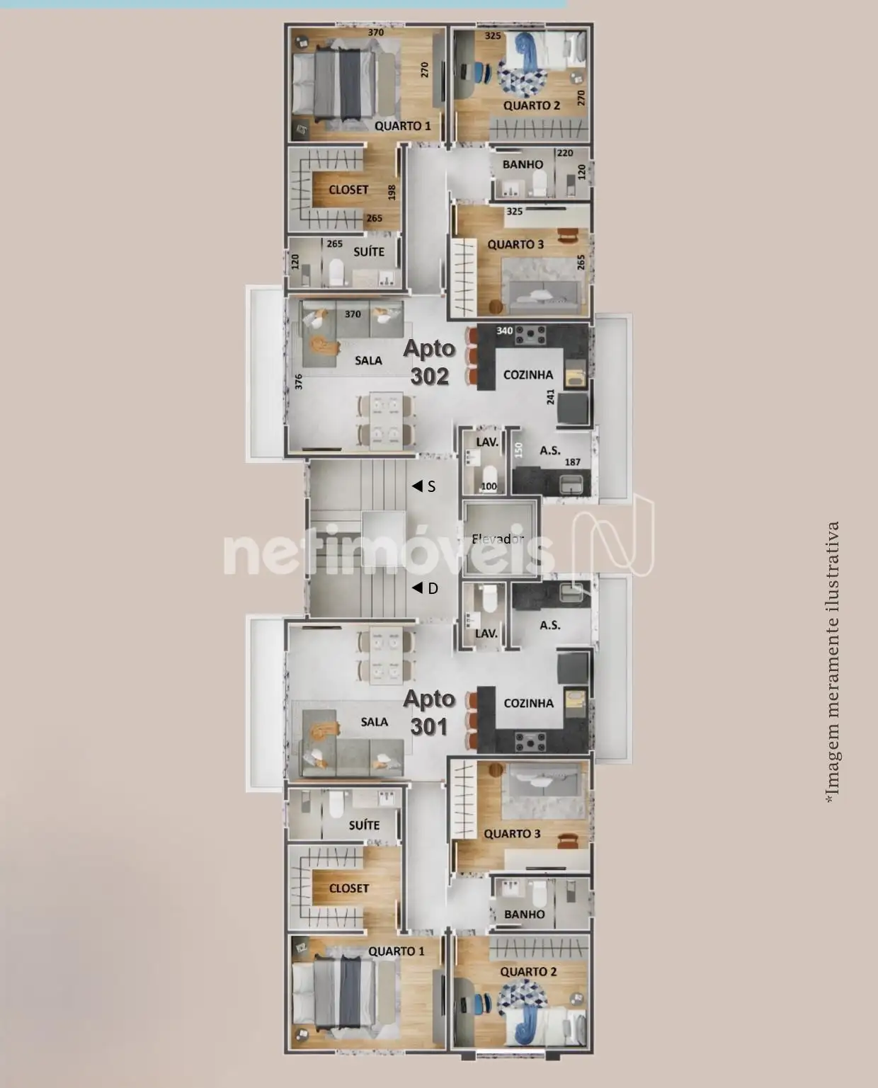 Prédio com elevador 02 Apartamentos Área Privativa: 02 Vagas de garagem cobertas, 03 Quartos, sendo 01 quarto com suíte e closet e 2 quartos semi-suíte, Banheiro social, Lavabo na sala, Sala para 2 e 3 ambientes, Cozinha, Área de Serviço e Área privativa; 02 Apartamentos Tipo: 02 Vagas de garagem cobertas, 03 Quartos, sendo 01 quarto com suíte e closet e 2 quartos com semi-suíte, Banheiro social, Sala para 2 e 3 ambientes com varanda gourmet e lavabo, Cozinha, Área de Serviço fora da cozinha (varanda); 02 Apartamentos Tipo: 02 Vagas de garagem cobertas, 03 Quartos, sendo 01 quarto com suíte e closet e 2 quartos com semi-suíte, Banheiro social, Sala para 2 e 3 ambientes com lavabo, Cozinha, Área de Serviço fora da cozinha (varanda); 02 Apartamentos Cobertura duplex: 02 vagas de garagem coberta; Primeiro pavimento: 04 Quartos, sendo 01 com suíte e closet, 01 com suíte e 2 quartos comuns, 1 Banheiro social, sala de apoio (mini cozinha); Segundo pavimento: Cozinha gourmet, Sala para 2 e 3 ambientes com Lavabo; Área externa: Epa (Piscina), Ducha, Área de serviço, Área privativa (terraço) Acabamento de alto padrão. Previsão de obra: julho de 2026